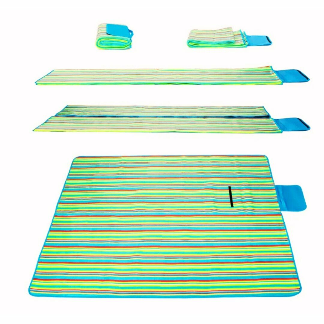 Коврик пляжный складной / Коврик-сумка для отдыха / Туристическое одеяло для пикника / Непромокаемый кемпинговый плед / 200х180 см / полоски интересное: