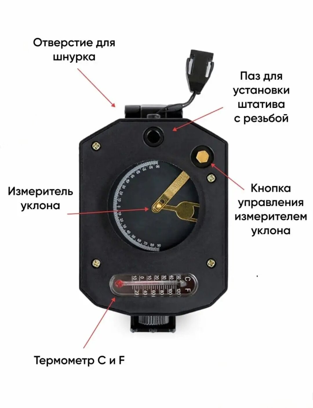 | Особенности | водонепроницаемый корпус, люминесцентный, с визиром, с клинометром, с креплением на штатив, с пузырьковым уровнем, с термометром |