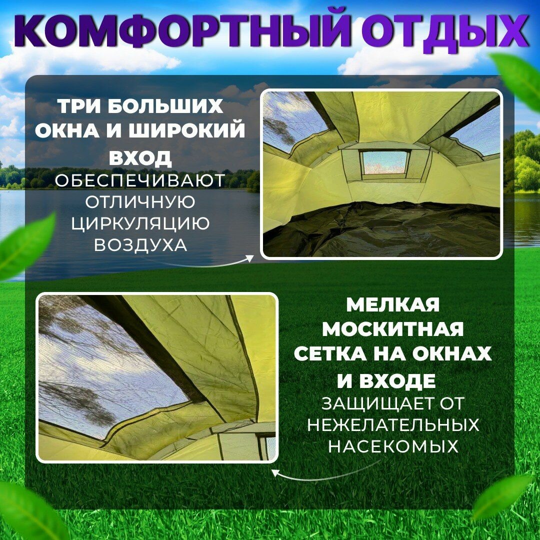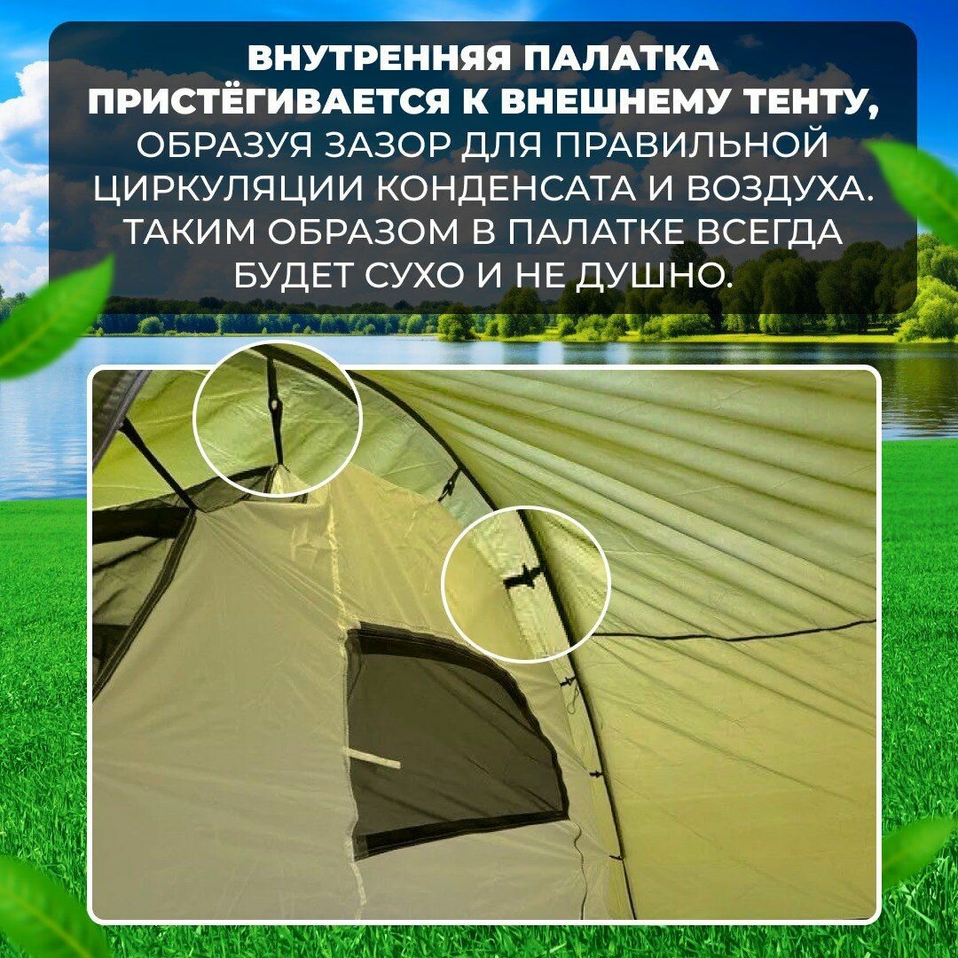 Палатка туристическая 6 местная с тамбуром двухслойная, палатка шатер пляжная с москитной сеткой для кемпинга, туризма и рыбалки