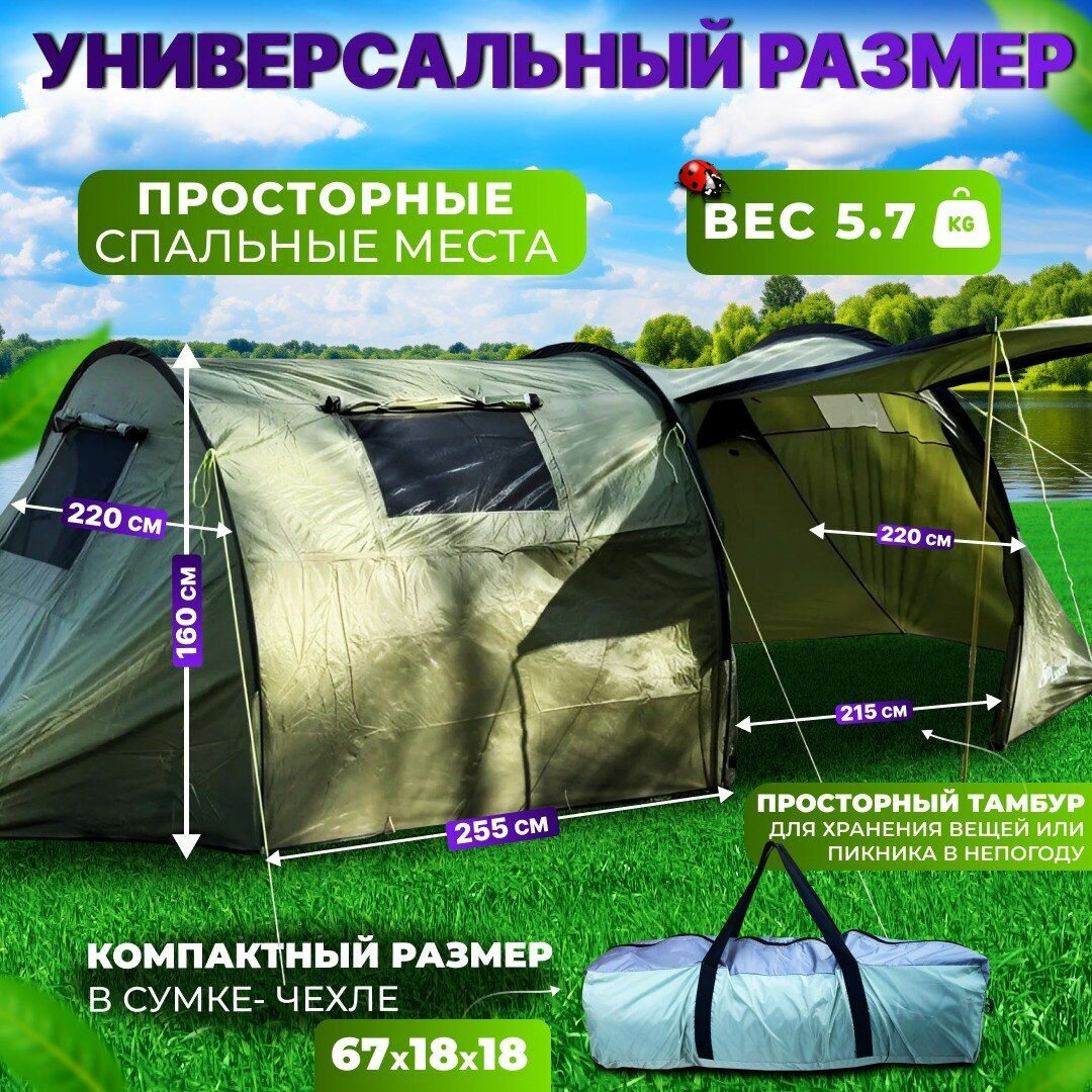 Палатка туристическая 4 местная с тамбуром двухслойная, палатка двухкомнатная пляжная с москитной сеткой для кемпинга, туризма и рыбалки