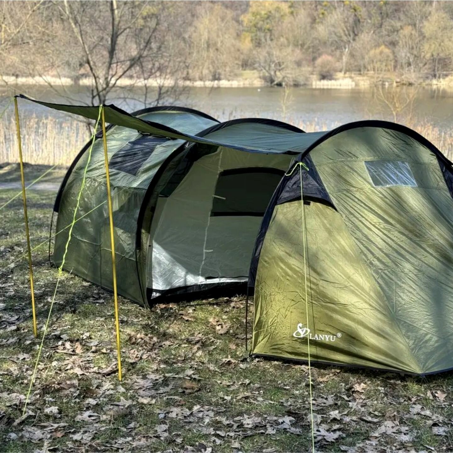 Купить Палатка туристическая 4 местная двухслойная с навесом, палатка с тамбуром пляжная с москитной сеткой для кемпинга, туризма и рыбалки