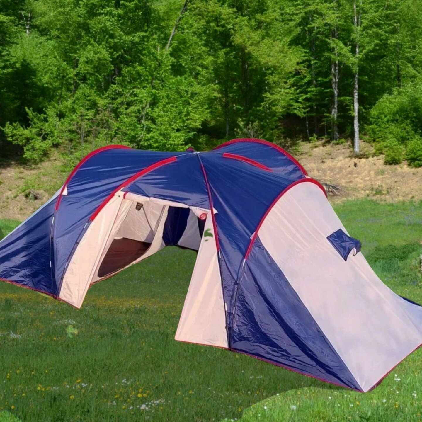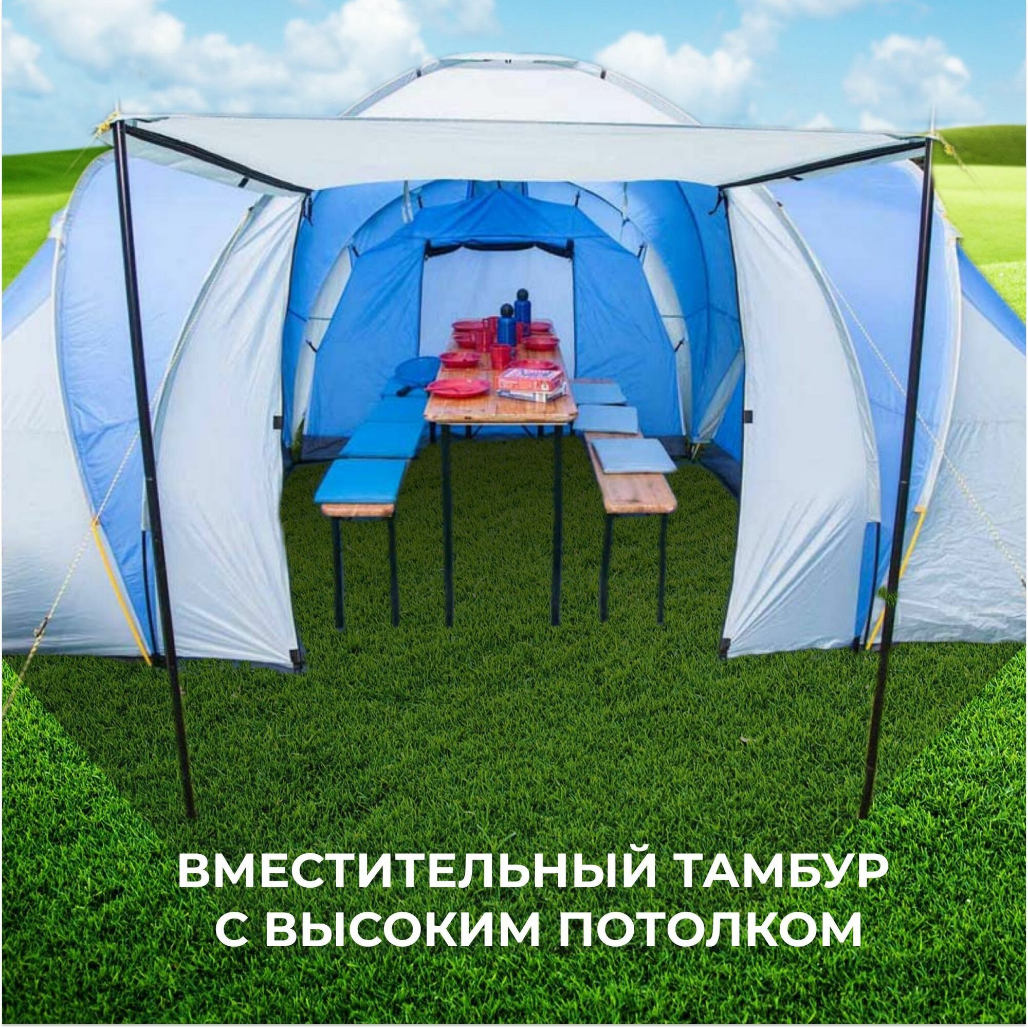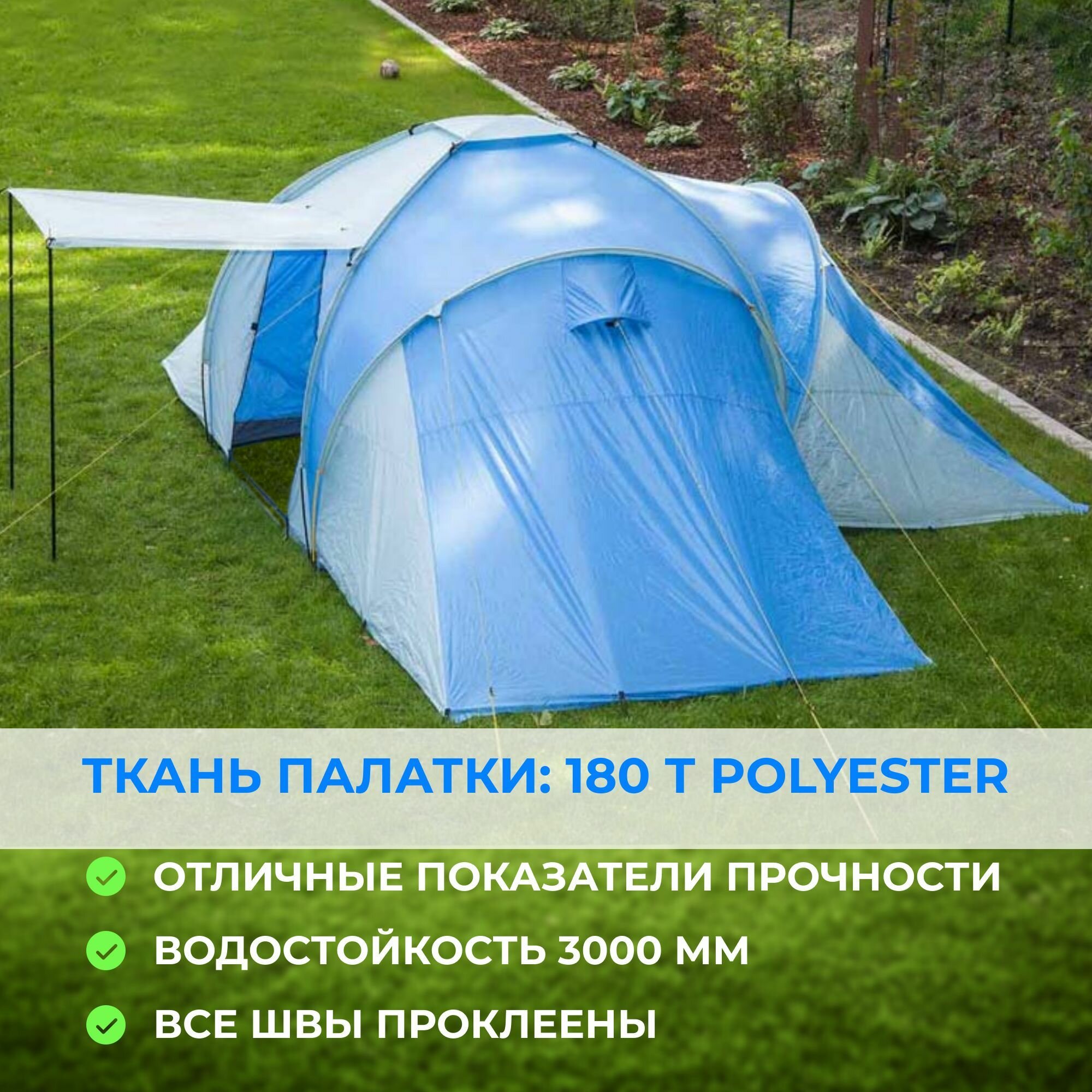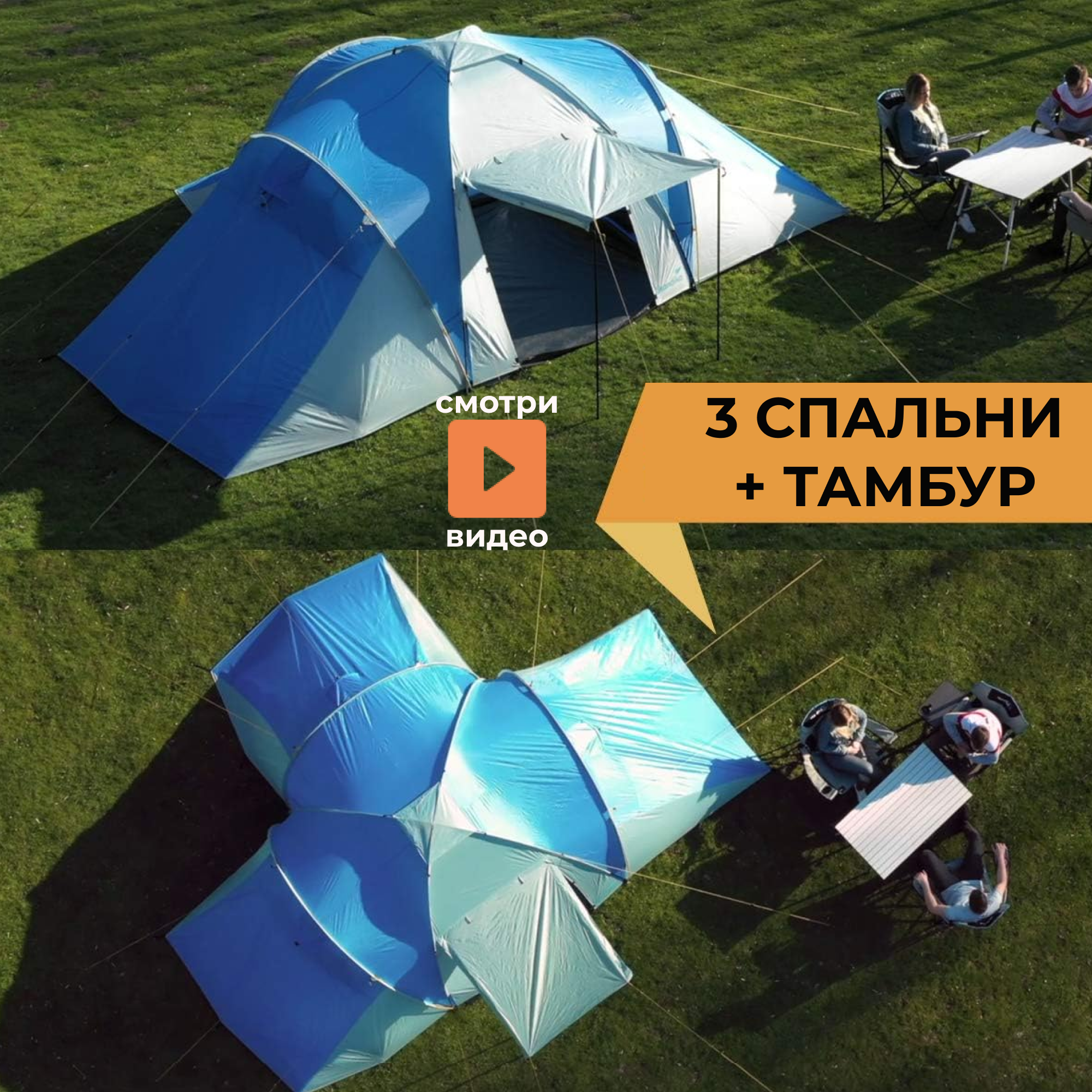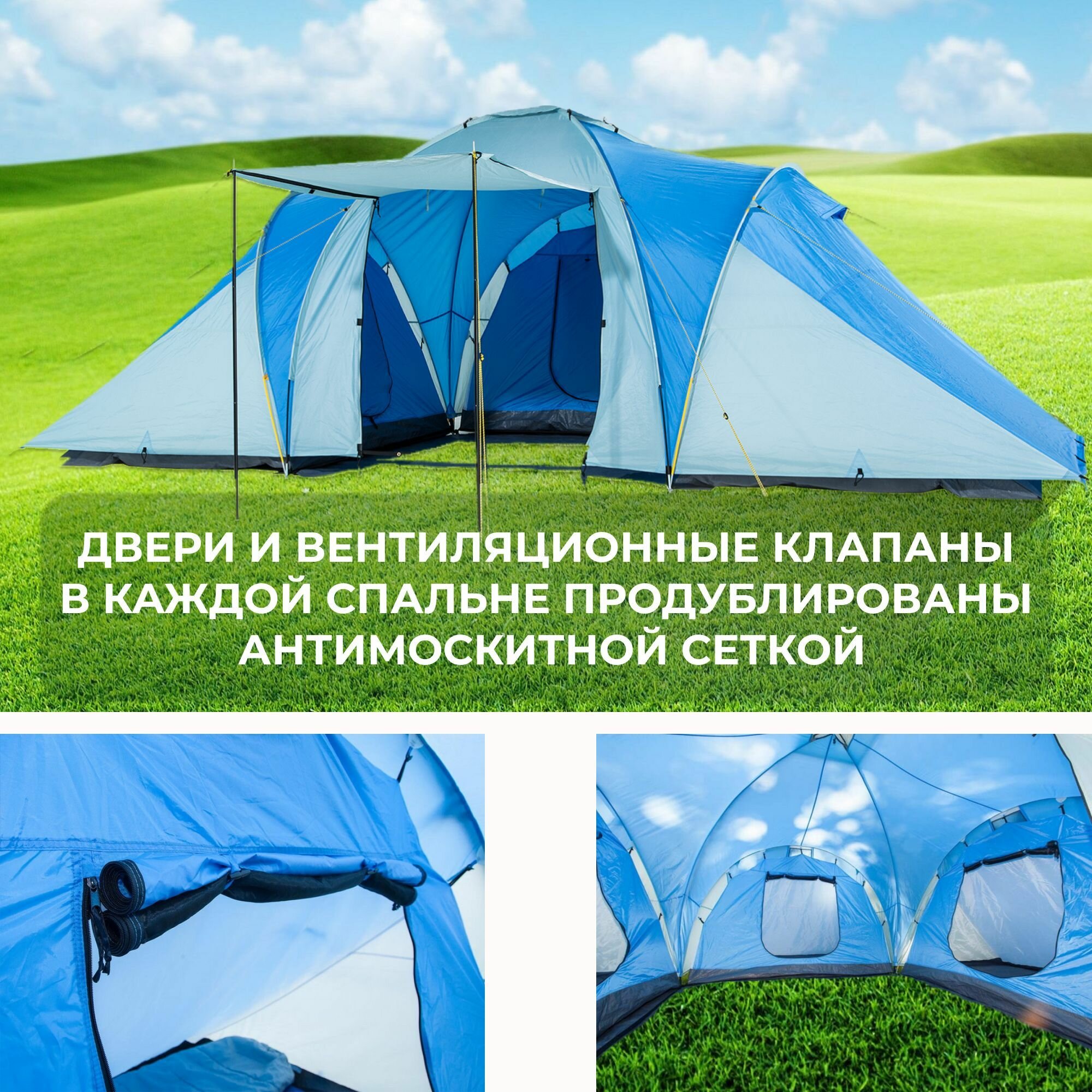 Купить Палатка туристическая 6 местная с тамбуром, трехкомнатная палатка пляжная кемпинговая для рыбалки и отдыха на природе