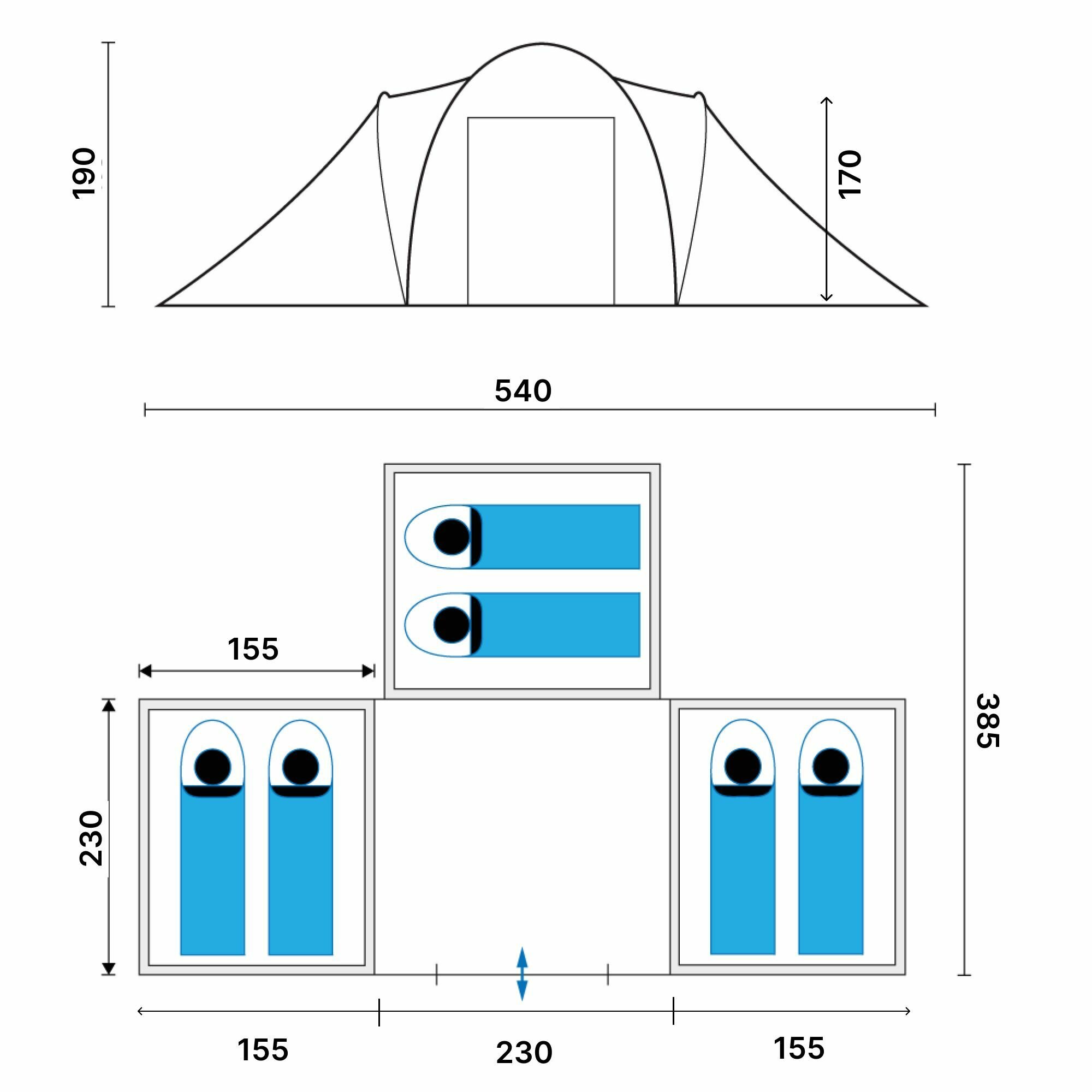| Дополнительная информация | Быстрая сборка, Вентиляционные окна, Внутренняя палатка, Герметизация швов, Навес, Противомоскитная сетка, Со стенками, Тамбур, Усиленные углы, Штормовые оттяжки |