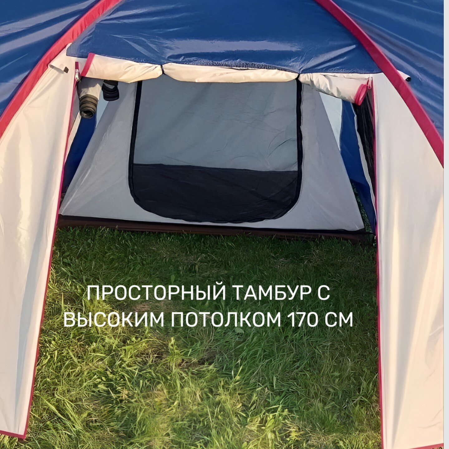 Палатка туристическая 4 местная с тамбуром двухслойная, палатка двухкомнатная пляжная с москитной сеткой для кемпинга, туризма и рыбалки