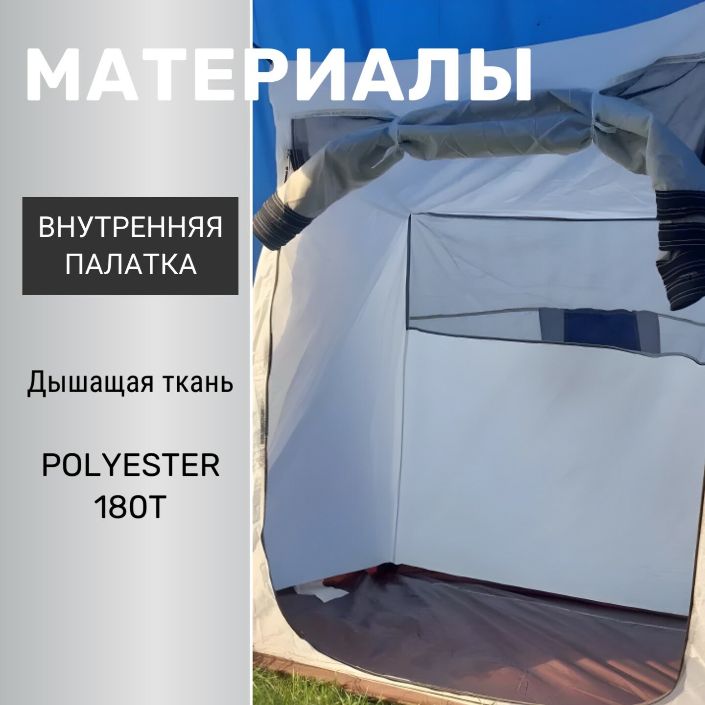 Палатка туристическая 4 местная двухслойная с навесом, палатка с тамбуром пляжная с москитной сеткой для кемпинга, туризма и рыбалки