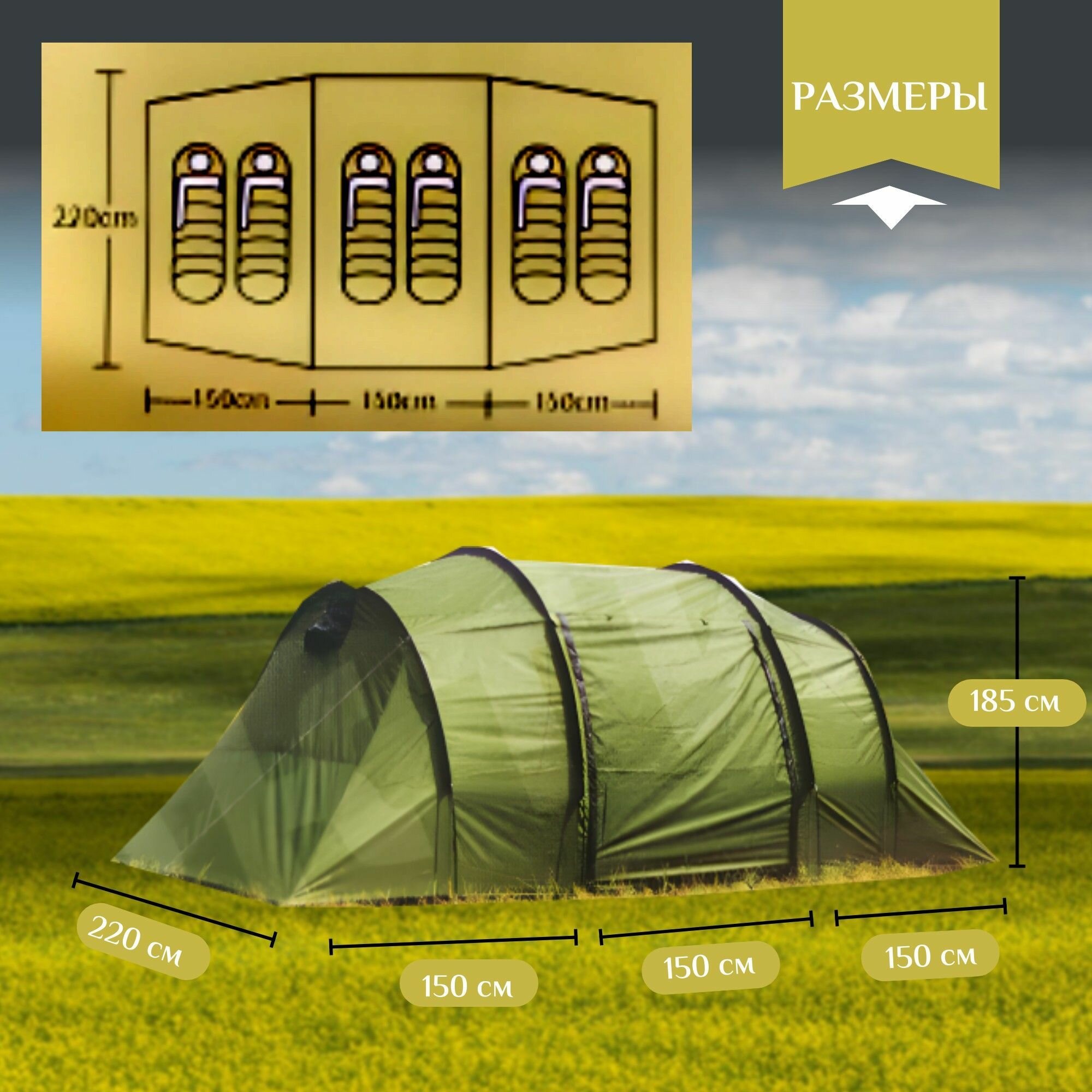 СохранитьПалатка туристическая 6 местная с тамбуром двухслойная, палатка большая двухкомнатная пляжная с москитной сеткой для кемпинга, туризма и рыбалки интересное: