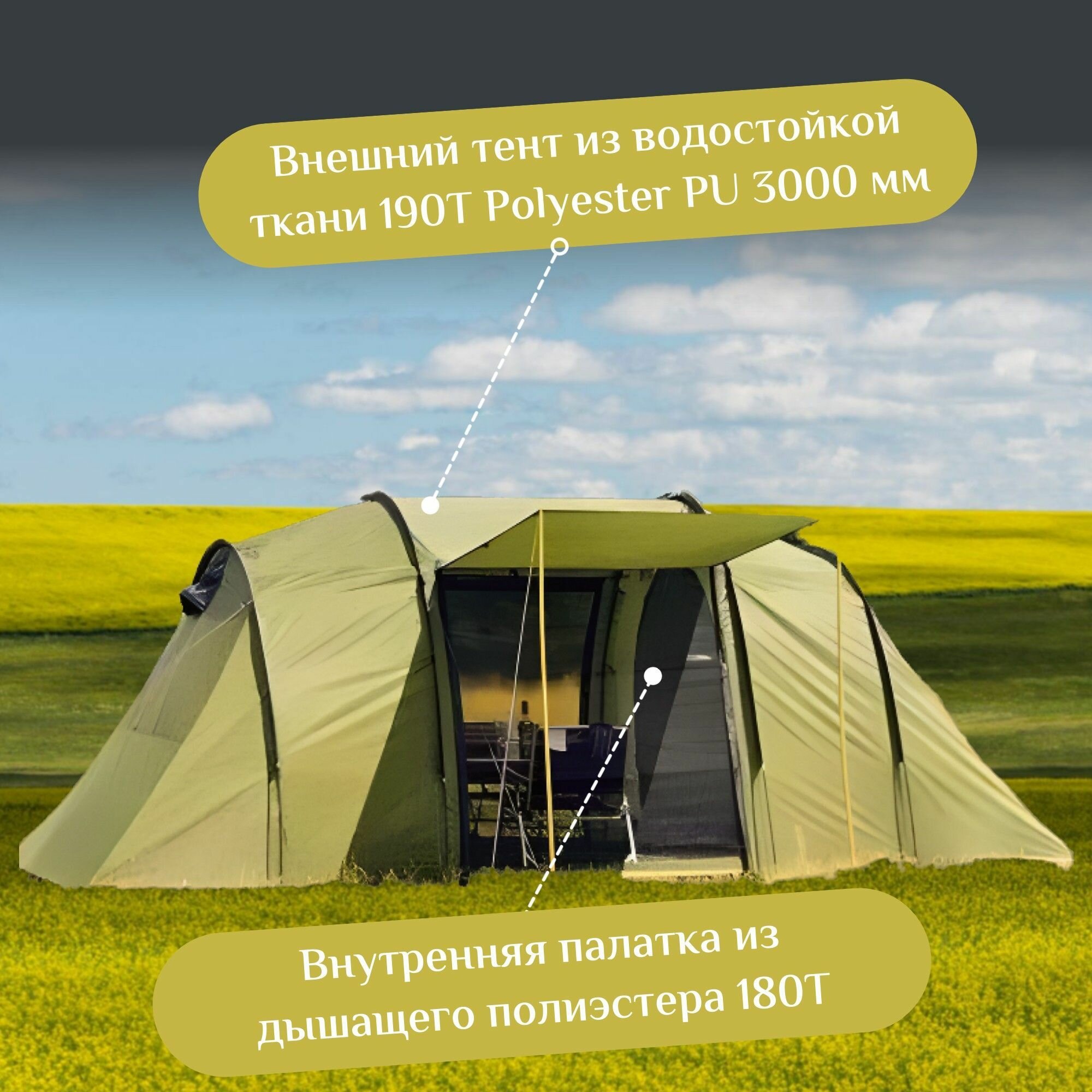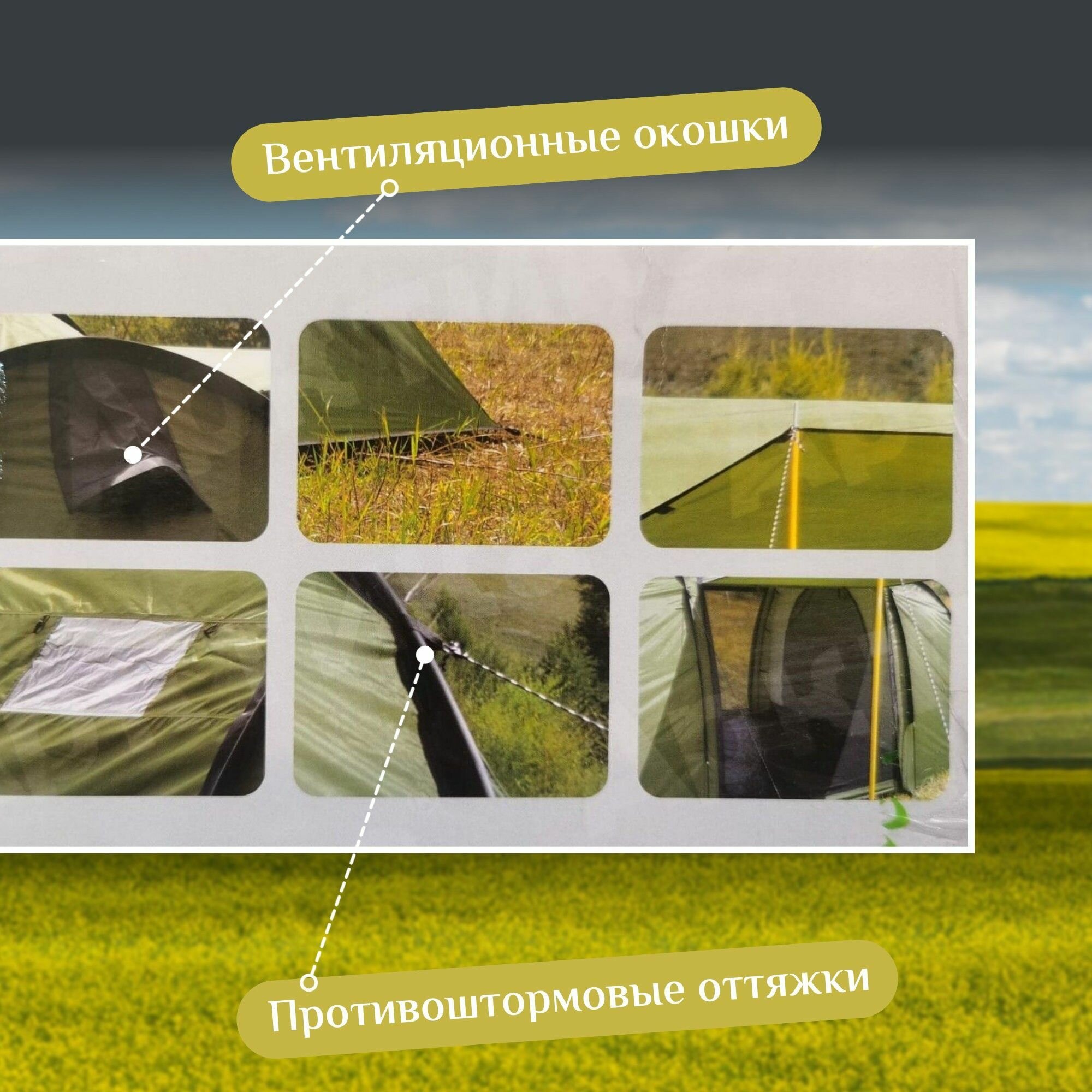 Купить Палатка туристическая 6 местная с тамбуром двухслойная, палатка большая двухкомнатная пляжная с москитной сеткой для кемпинга, туризма и рыбалки