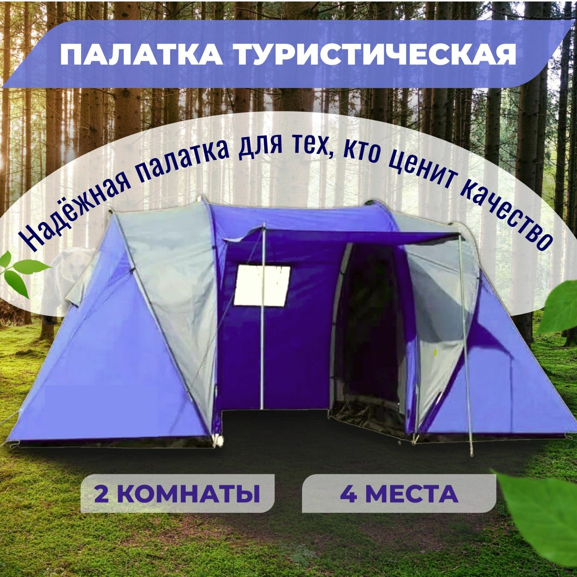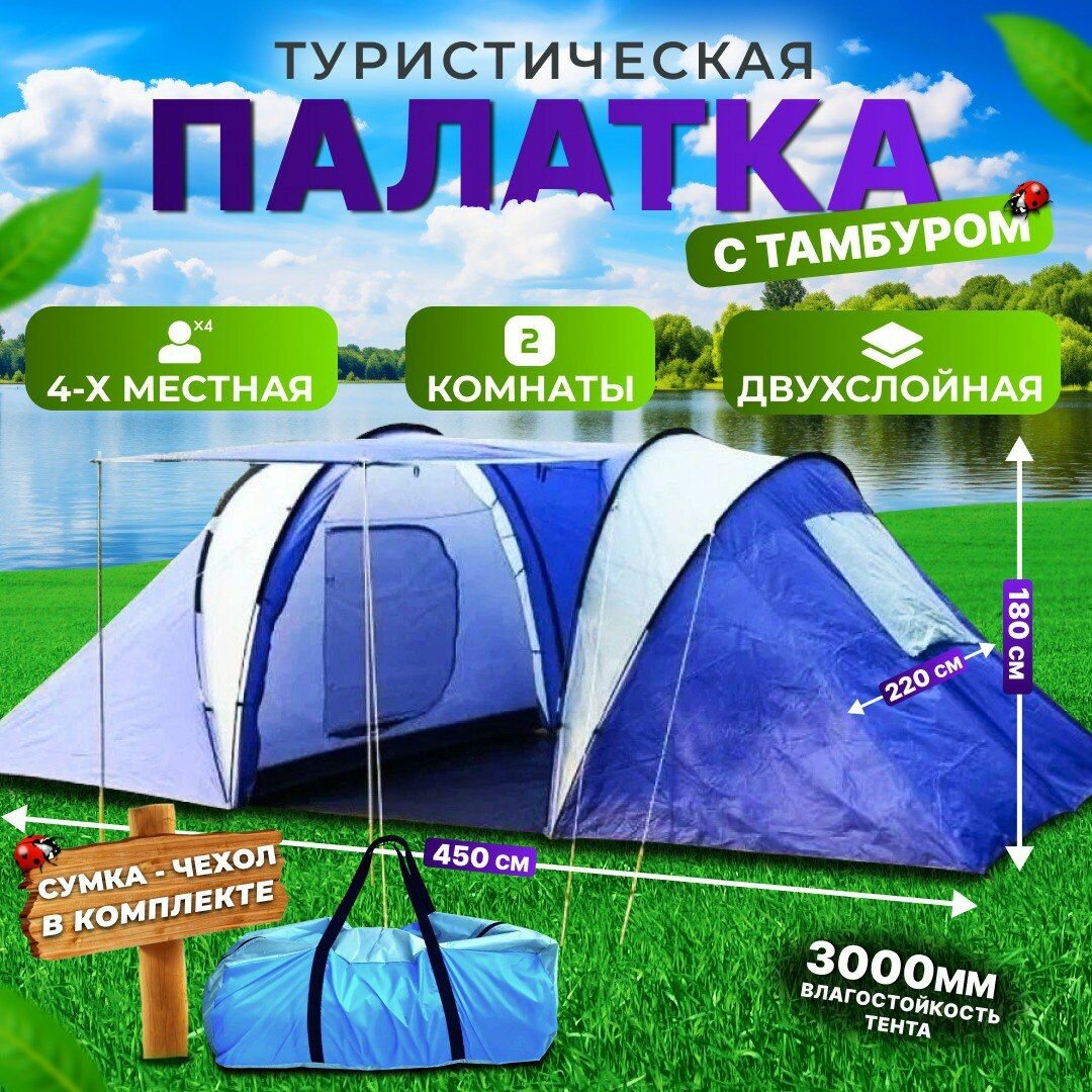 Купить Палатка туристическая 4 местная с тамбуром двухслойная, палатка двухкомнатная пляжная с москитной сеткой для кемпинга, туризма и рыбалки