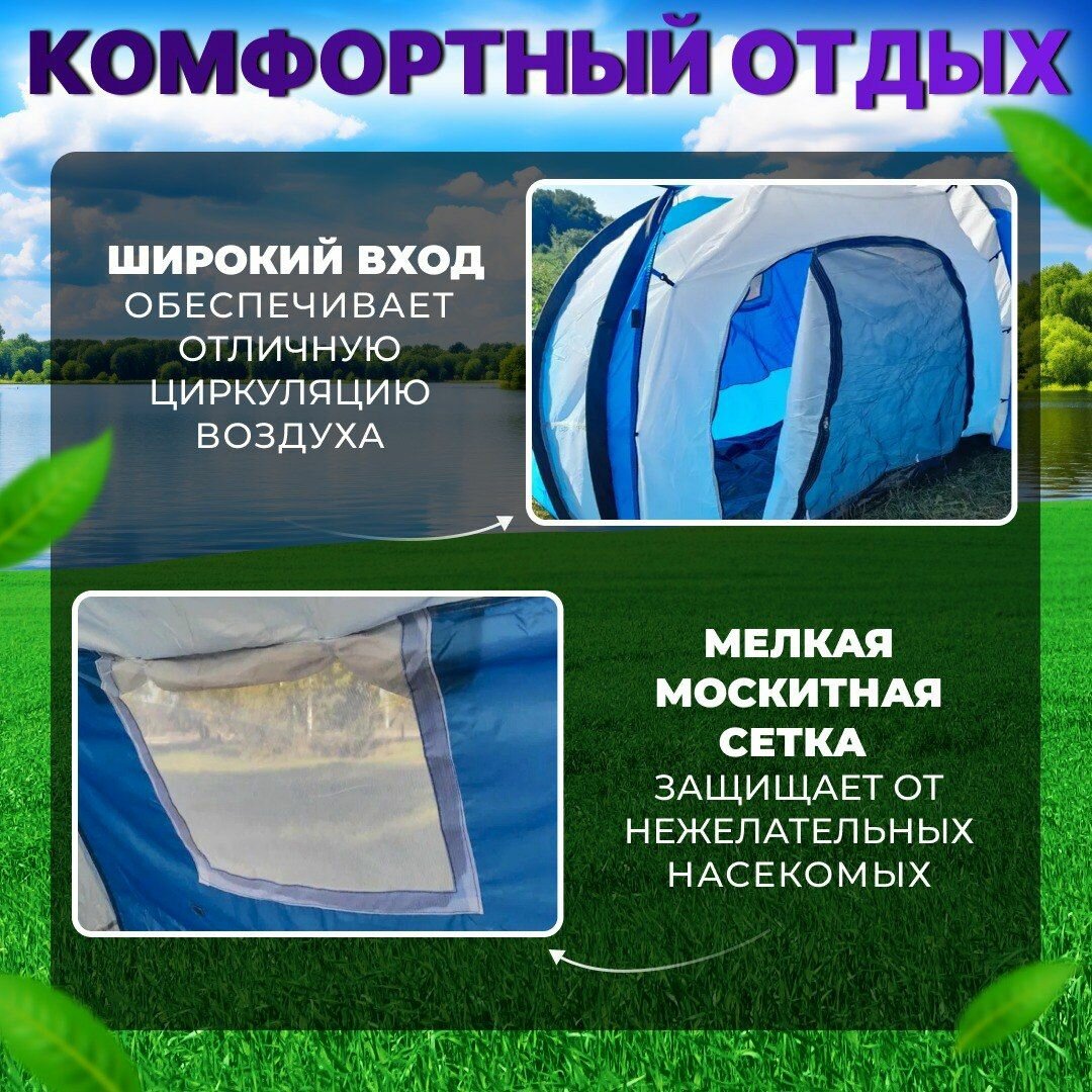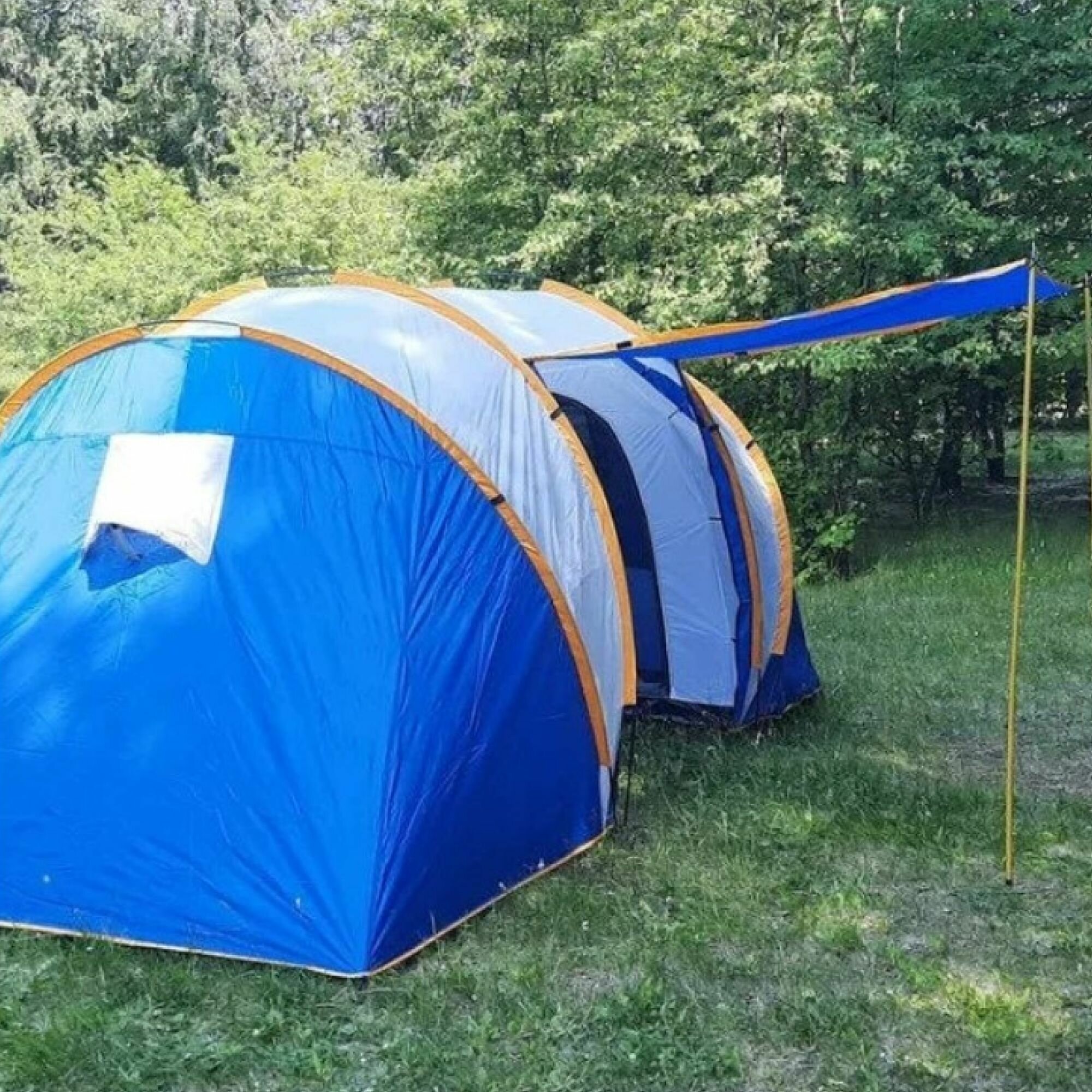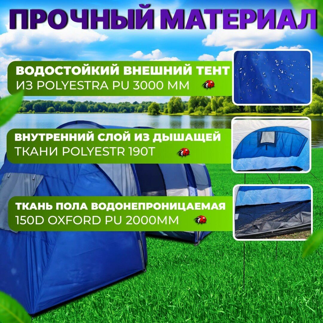 Палатка туристическая 4 местная двухслойная с навесом, палатка с тамбуром пляжная с москитной сеткой для кемпинга, туризма и рыбалки