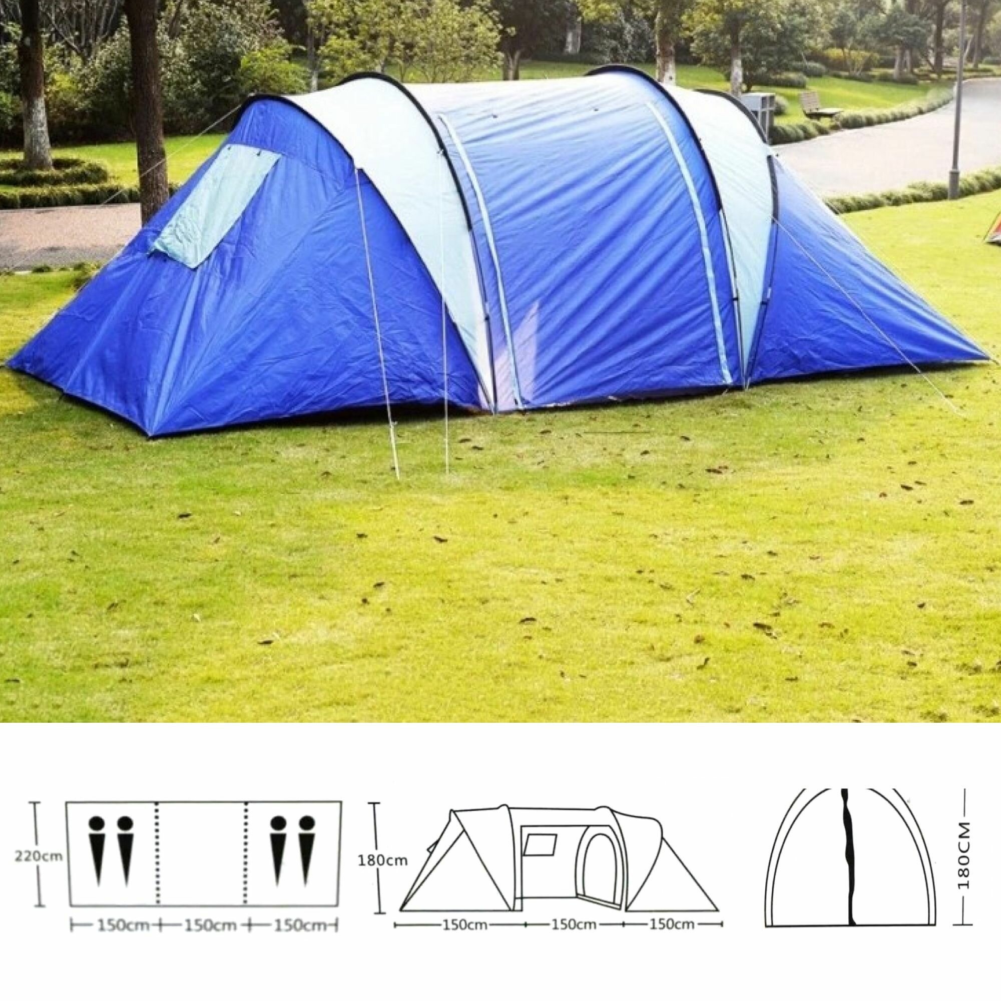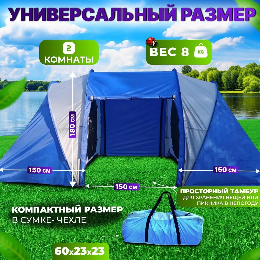 Палатка туристическая 6 местная с тамбуром двухслойная, палатка большая двухкомнатная пляжная с москитной сеткой для кемпинга, туризма и рыбалки