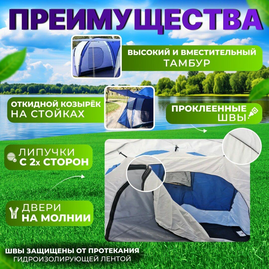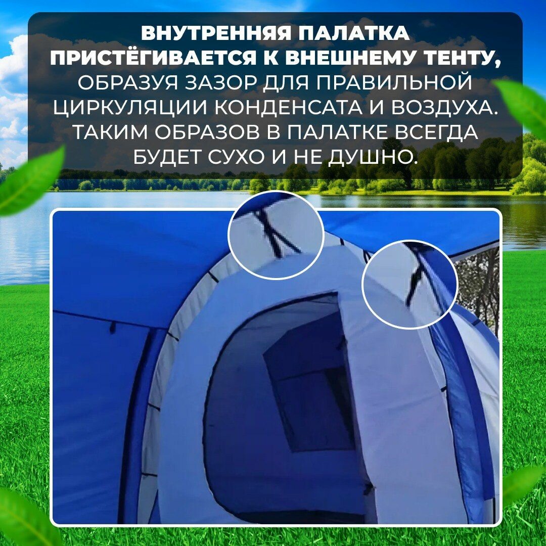 Палатка туристическая 6 местная с тамбуром двухслойная, палатка шатер пляжная с москитной сеткой для кемпинга, туризма и рыбалки