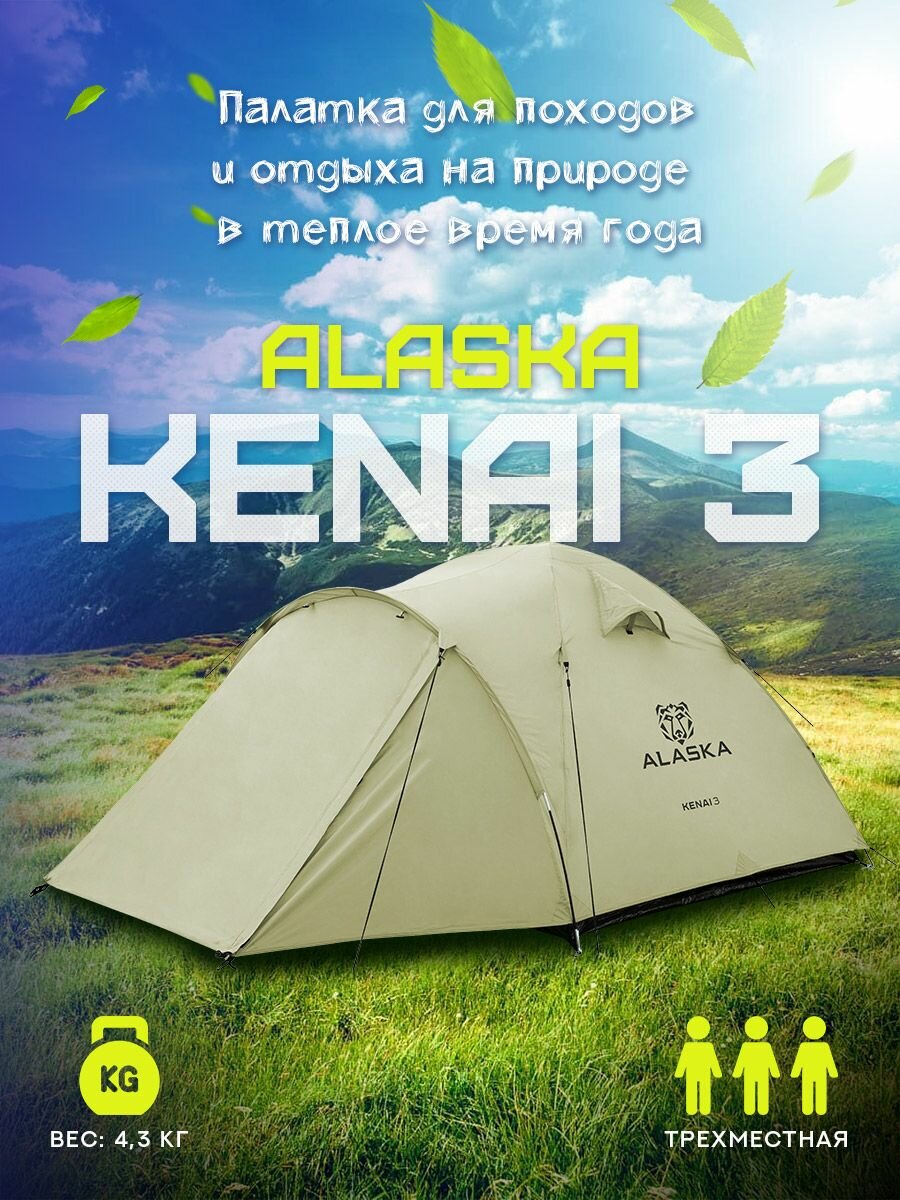 Палатка туристическая ALASKA-RUS Kenai, 3-местная, с тамбуром, водонепроницаемость 3000/6000мм, вес 4кг