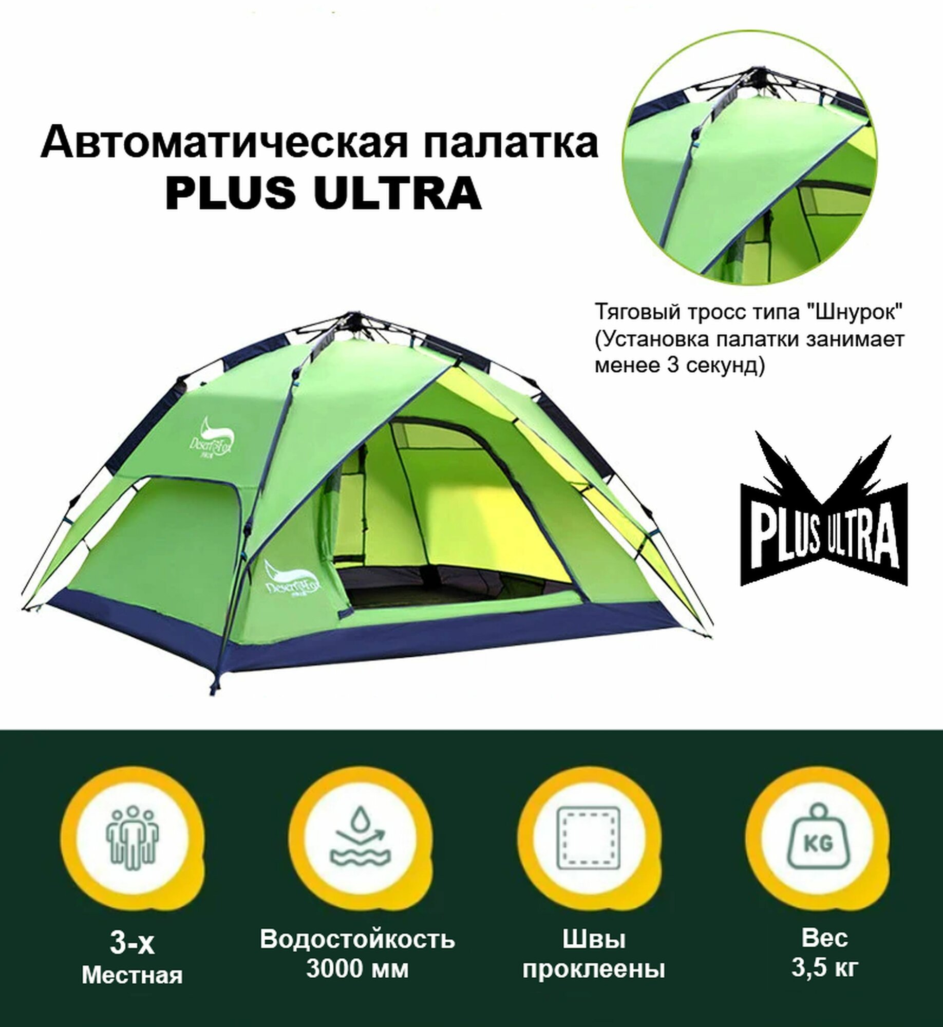 Автоматическая палатка "Desert Fox" трехместная для кемпинга и рыбалки, для трех людей. человек, интересное: