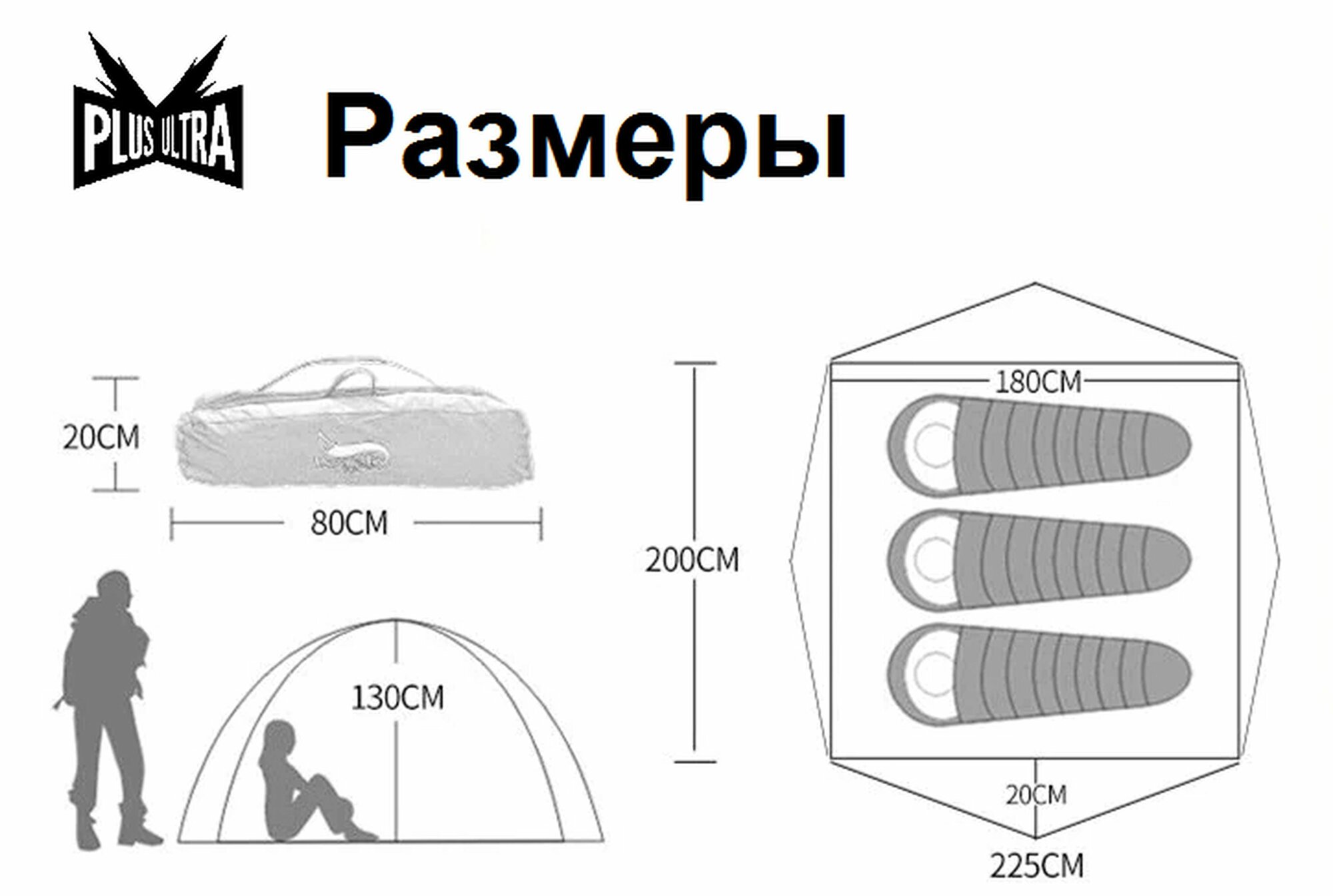 | Габариты внешней палатки(ДxШxВ) | 200x180x130 cм |