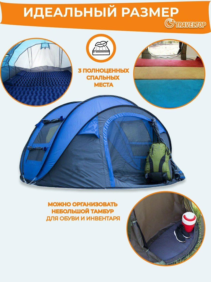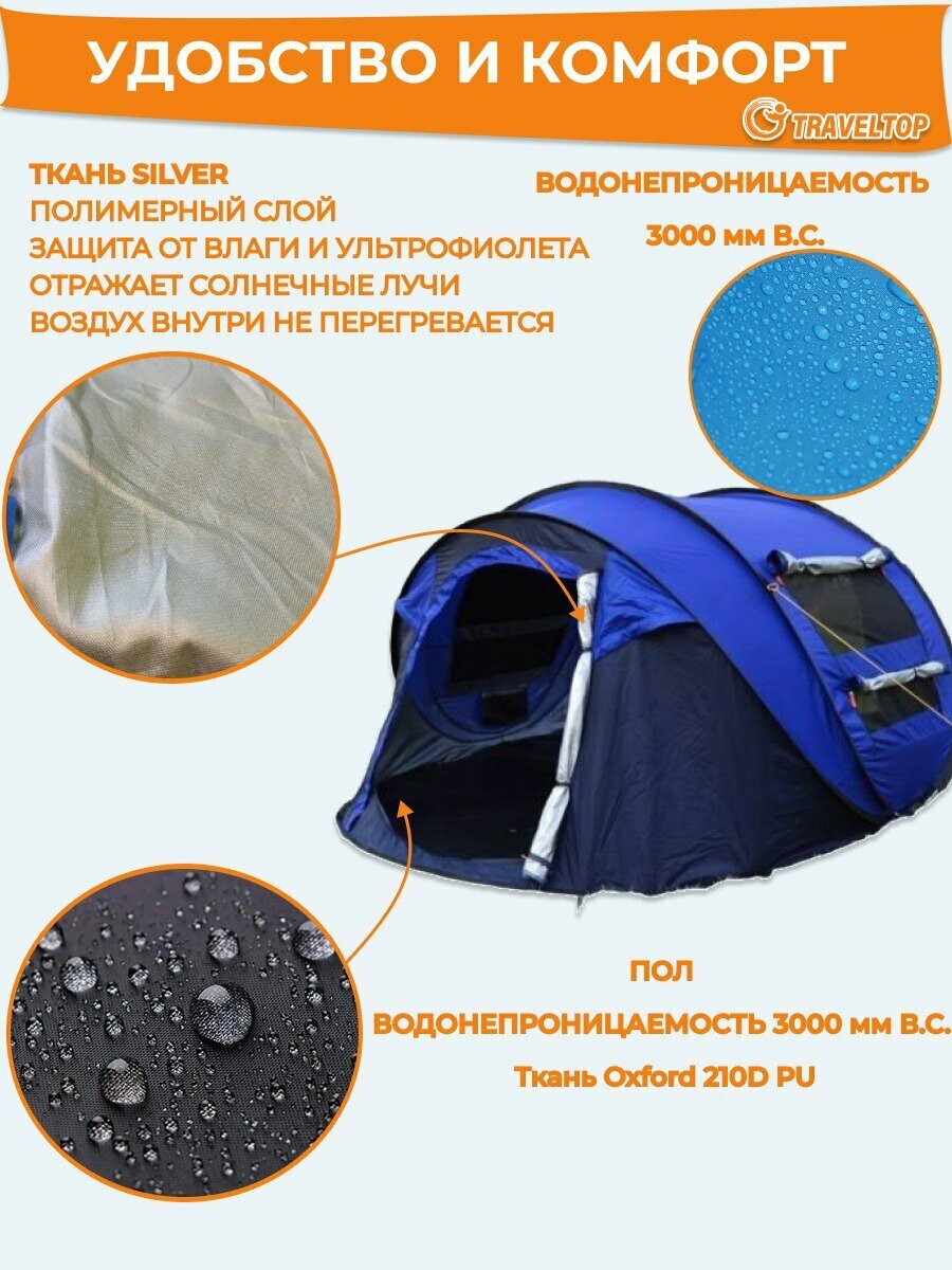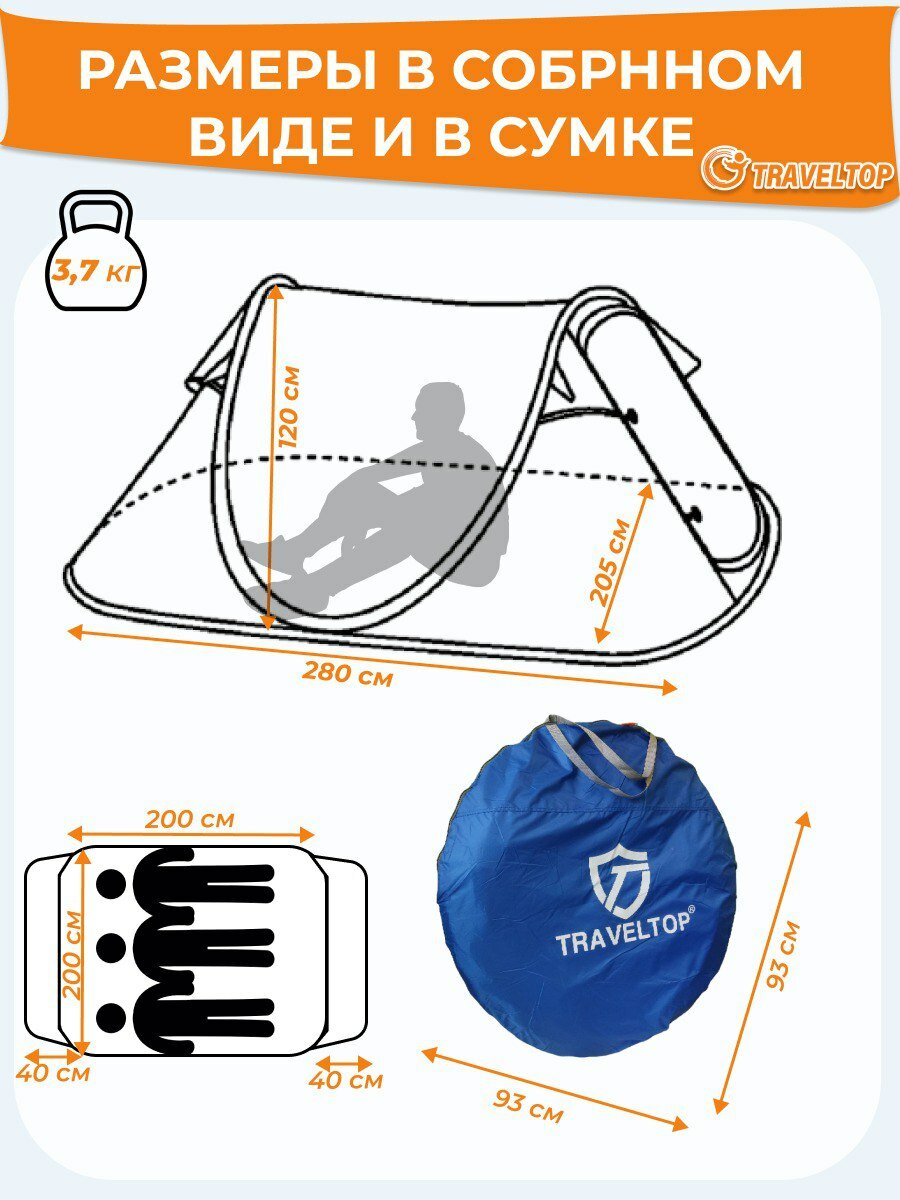 Палатка-автомат, 3-4 местная, Traveltop, 1906, 280х205х120см интересное: