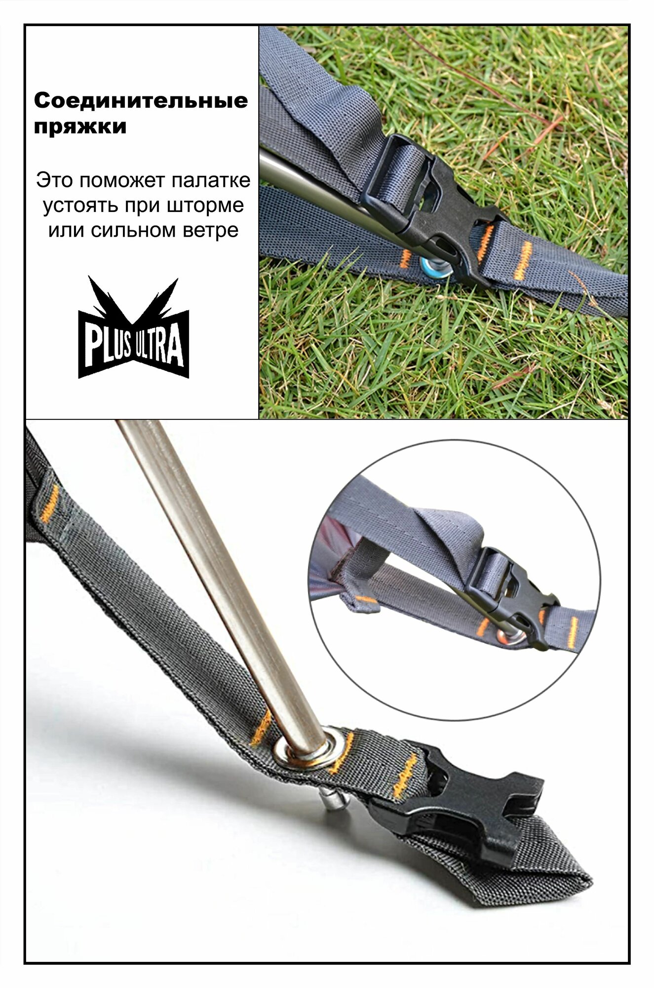 | Особенности | вентиляционные отверстия / внутренняя палатка / Возможность крепления фонарика / навес / огнеупорная пропитка / Подвесные полки / проклеенные швы / противомоскитная сетка / усиленные углы / штормовые оттяжки |