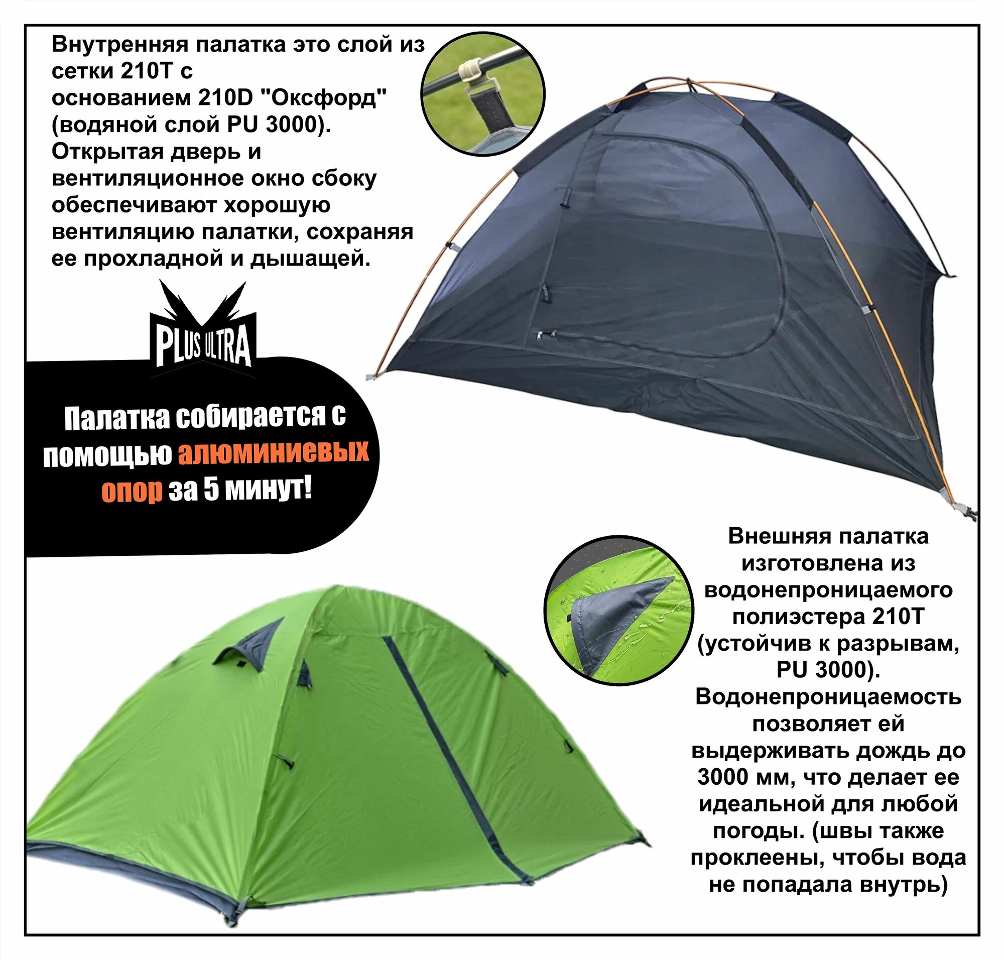 Двухслойная палатка "Desert-Fox Plus Ultra" двухместная, на 2 человек, Оксфорд 210D Pu интересное: