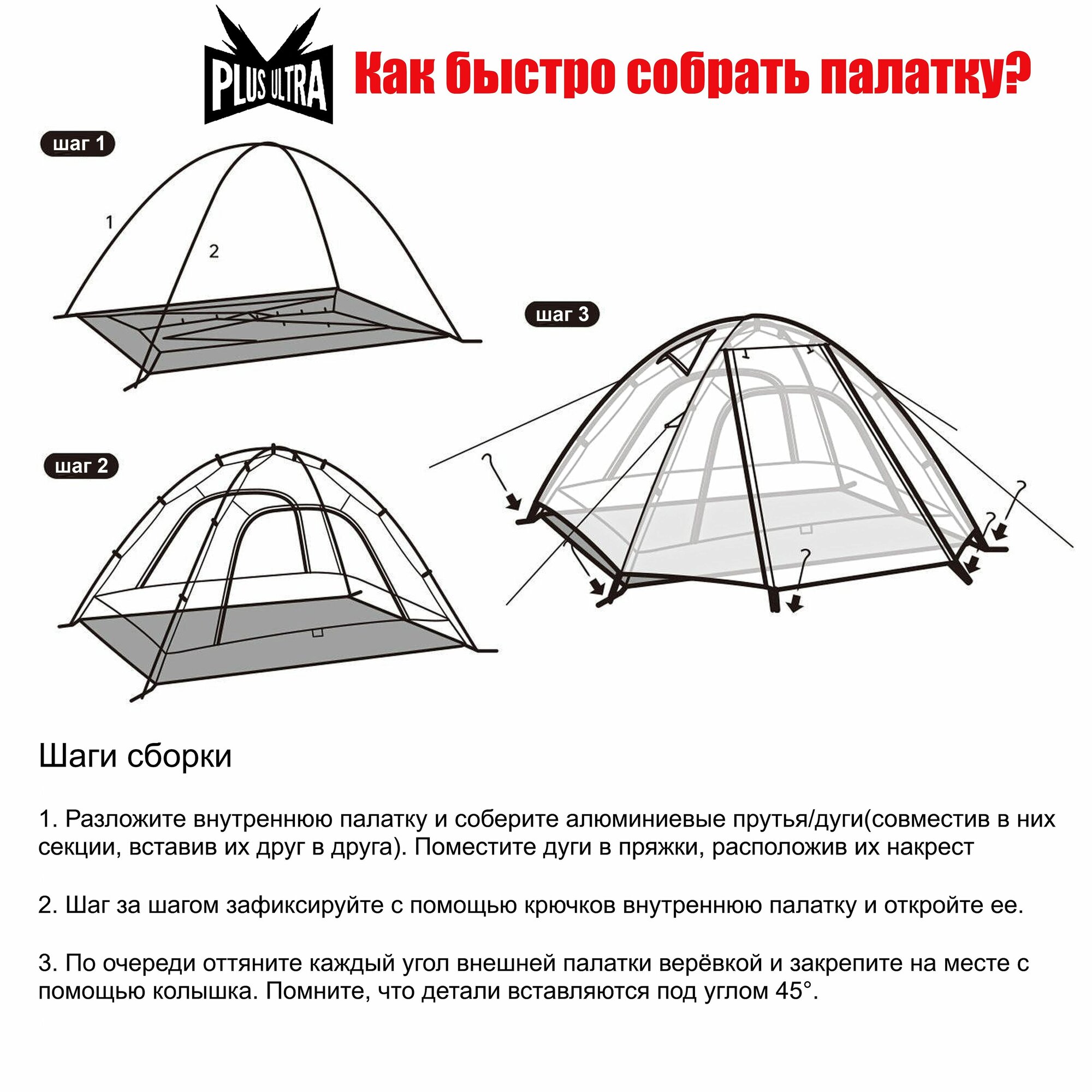 | Дополнительная информация | Комплектация: Палатка — 1 шт. Алюминиевые столбы — 2 шт. Колышек для палатки — 8 шт. Веревки — 2 шт. Сумка — 1 шт. |