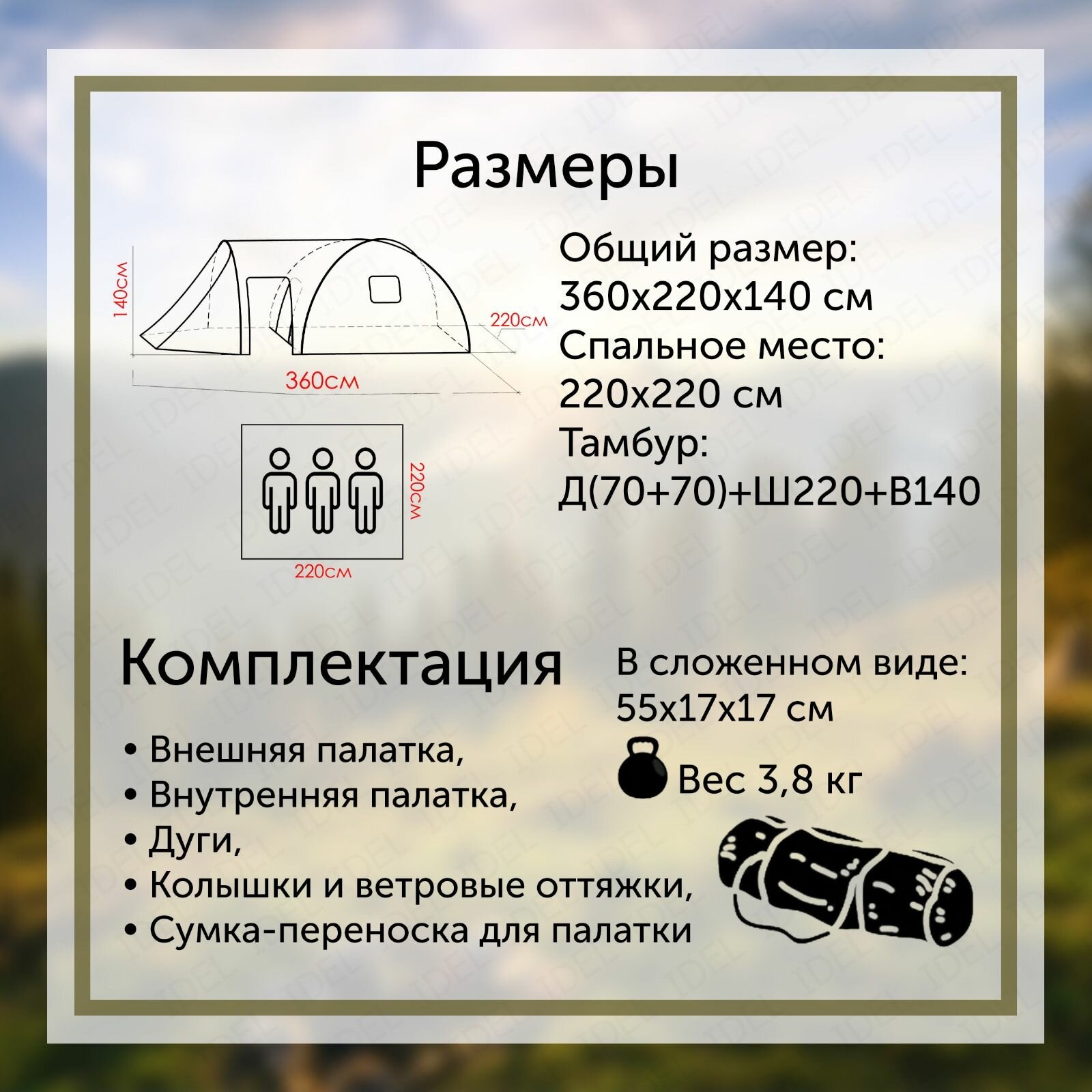 | Водостойкость тента | 3000 мм в.ст. |