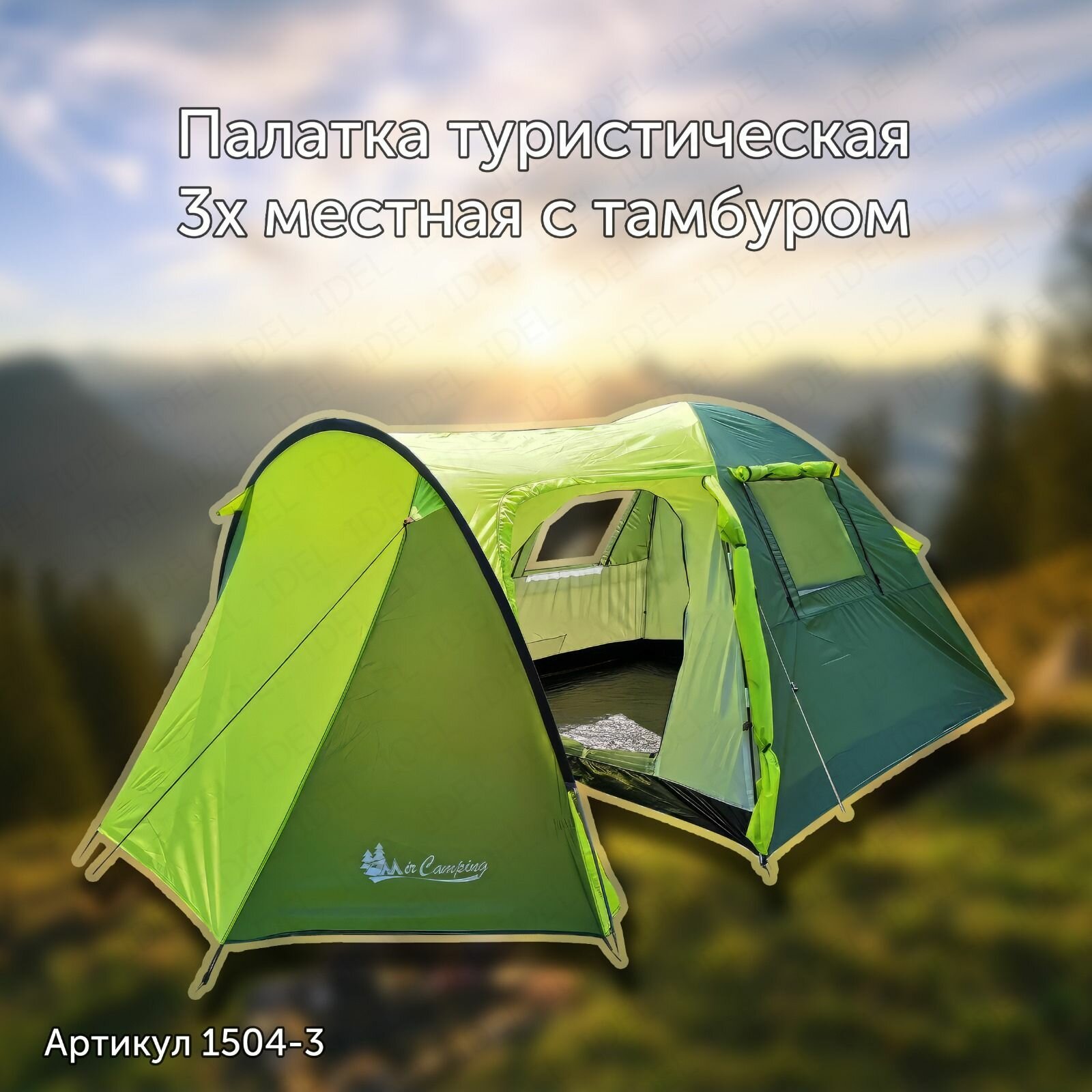 Палатка туристическая трехместная двухслойная с тамбуром MirCamping 1504-3 интересное: