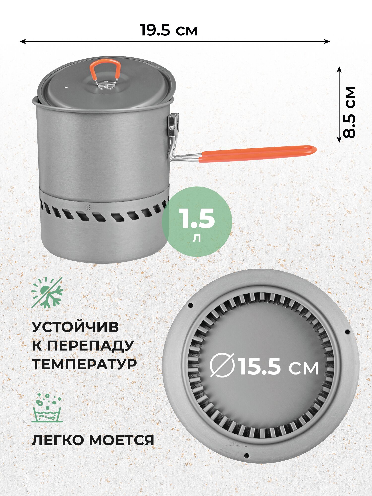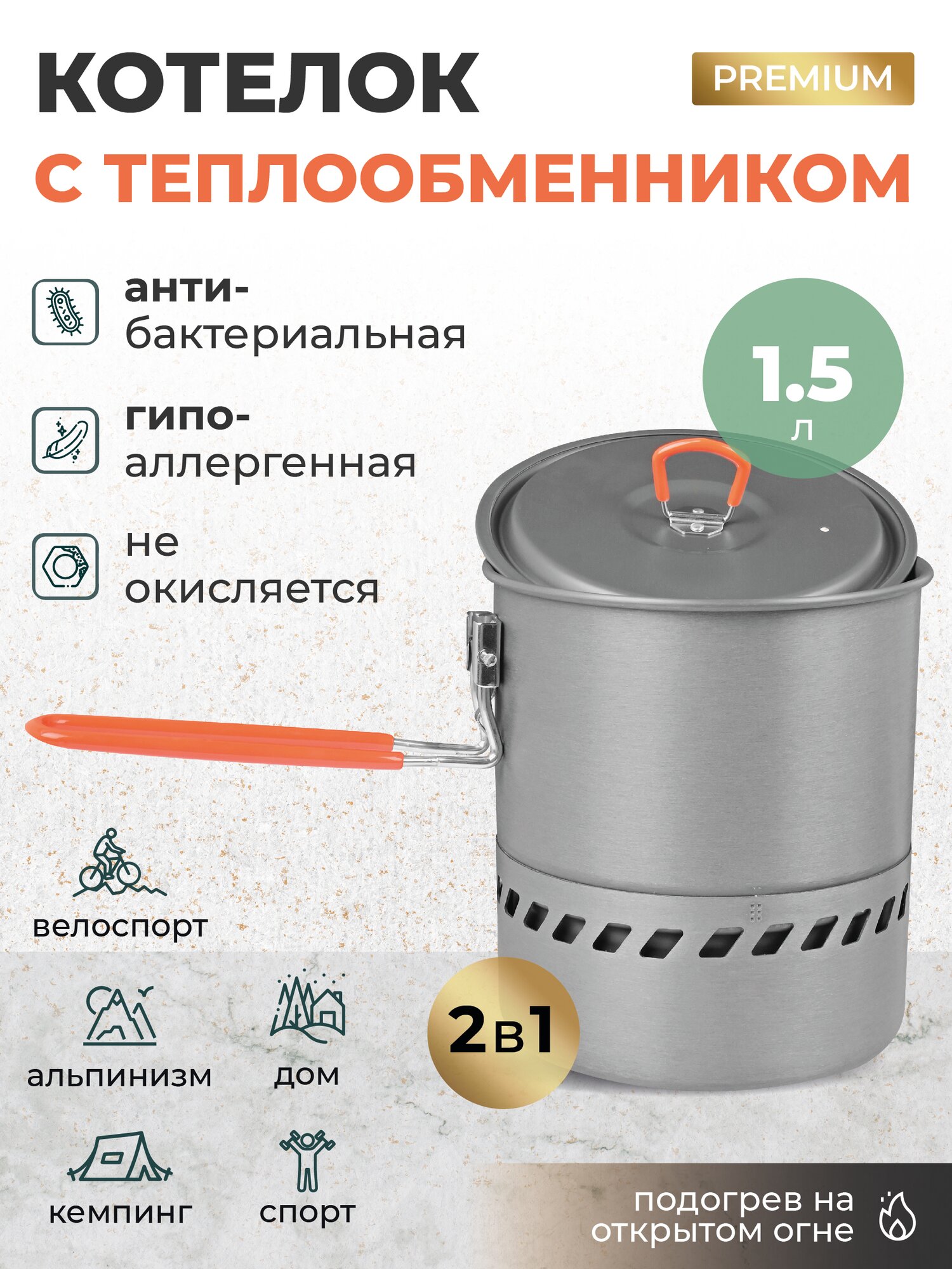 Котелок с теплообменником походный для костра 1,5 л интересное: