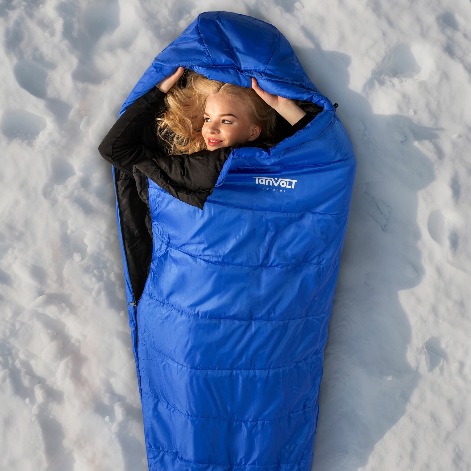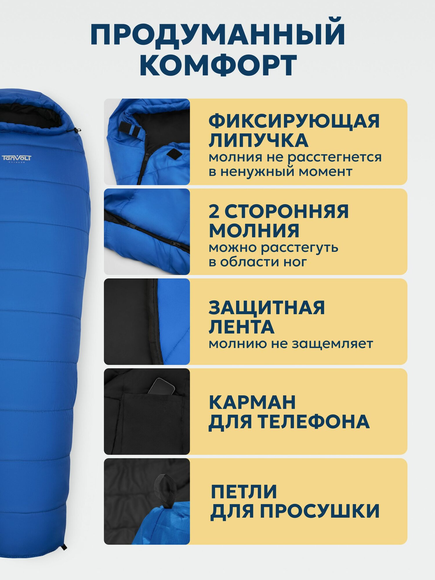 Купить Спальный мешок "Кокон" туристический теплый с капюшоном Tanvolt, синий