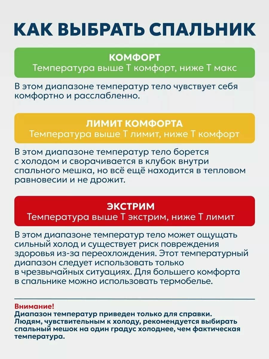| Особенности | возможность состегивания, двойная молниия, защита от заедания молнии, капюшон, компрессионный мешок, наличие карманов |