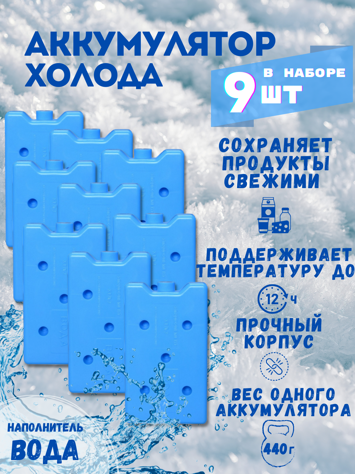 Купить Аккумулятор холода - 9 шт. в комплекте / Хладоэлемент 440 гр