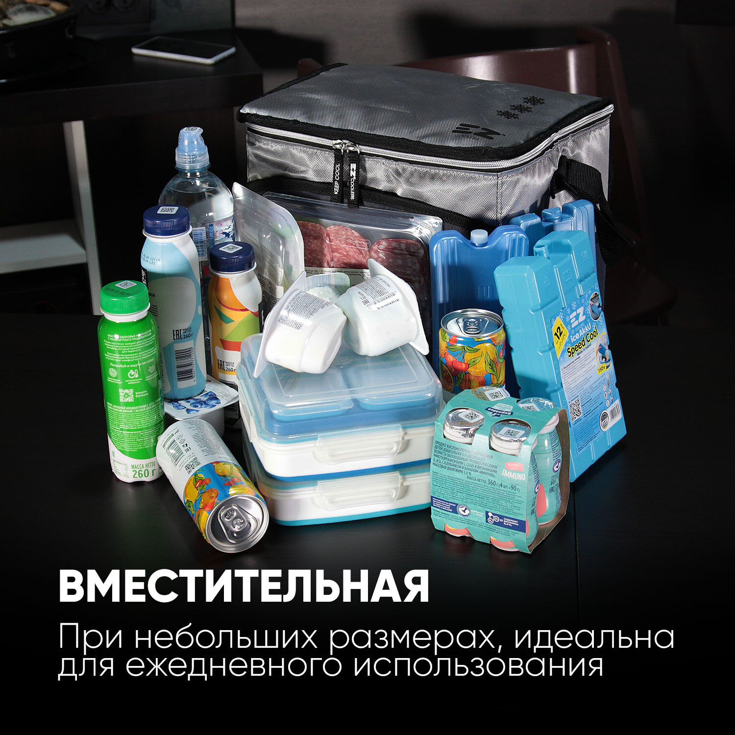 Сумка-холодильник 16 литров EZ Extremal blue +2 аккумулятора EZ Coolers 300 гр интересное: