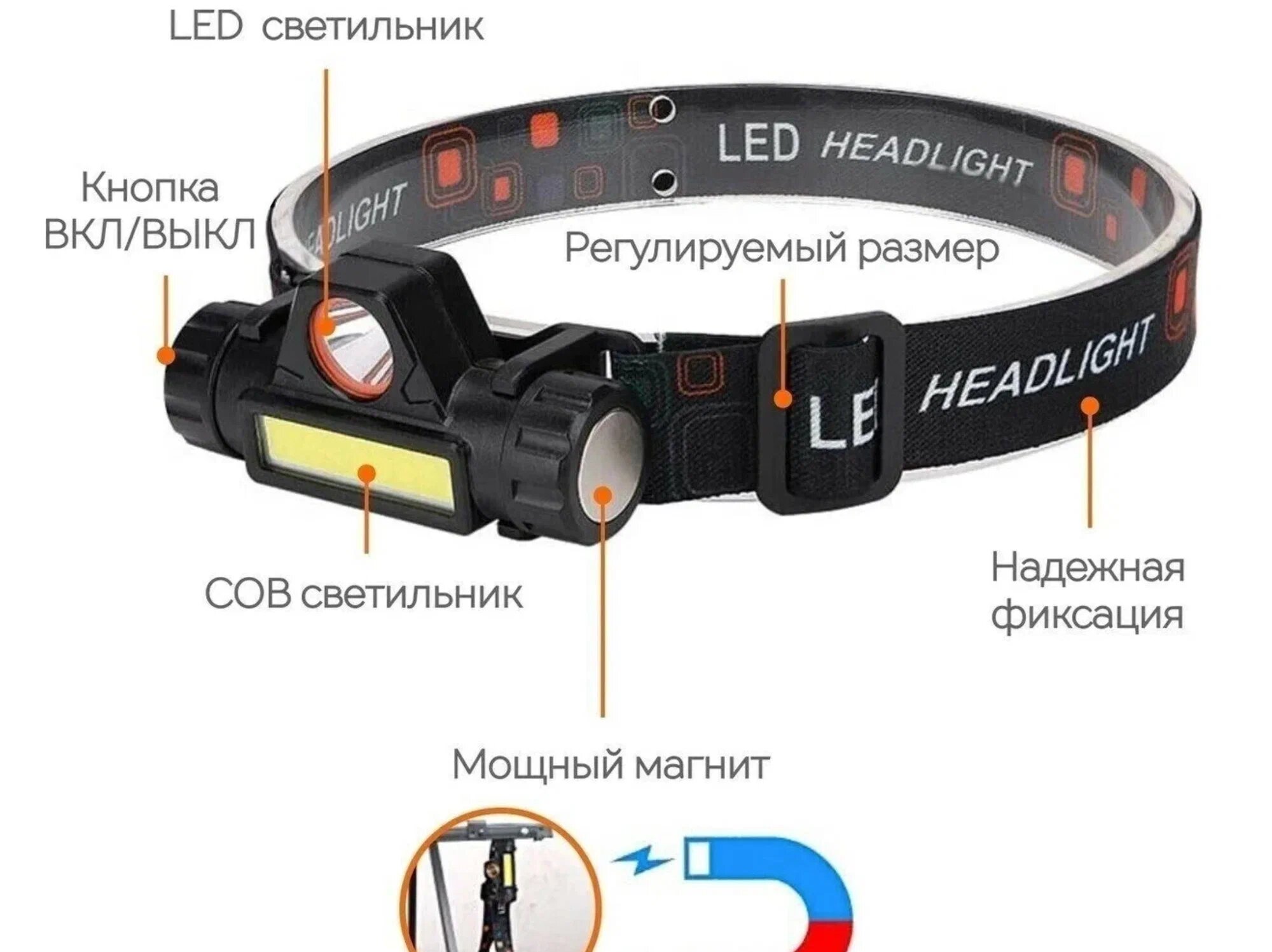 Купить Фонарик налобный аккумуляторный светодиодный