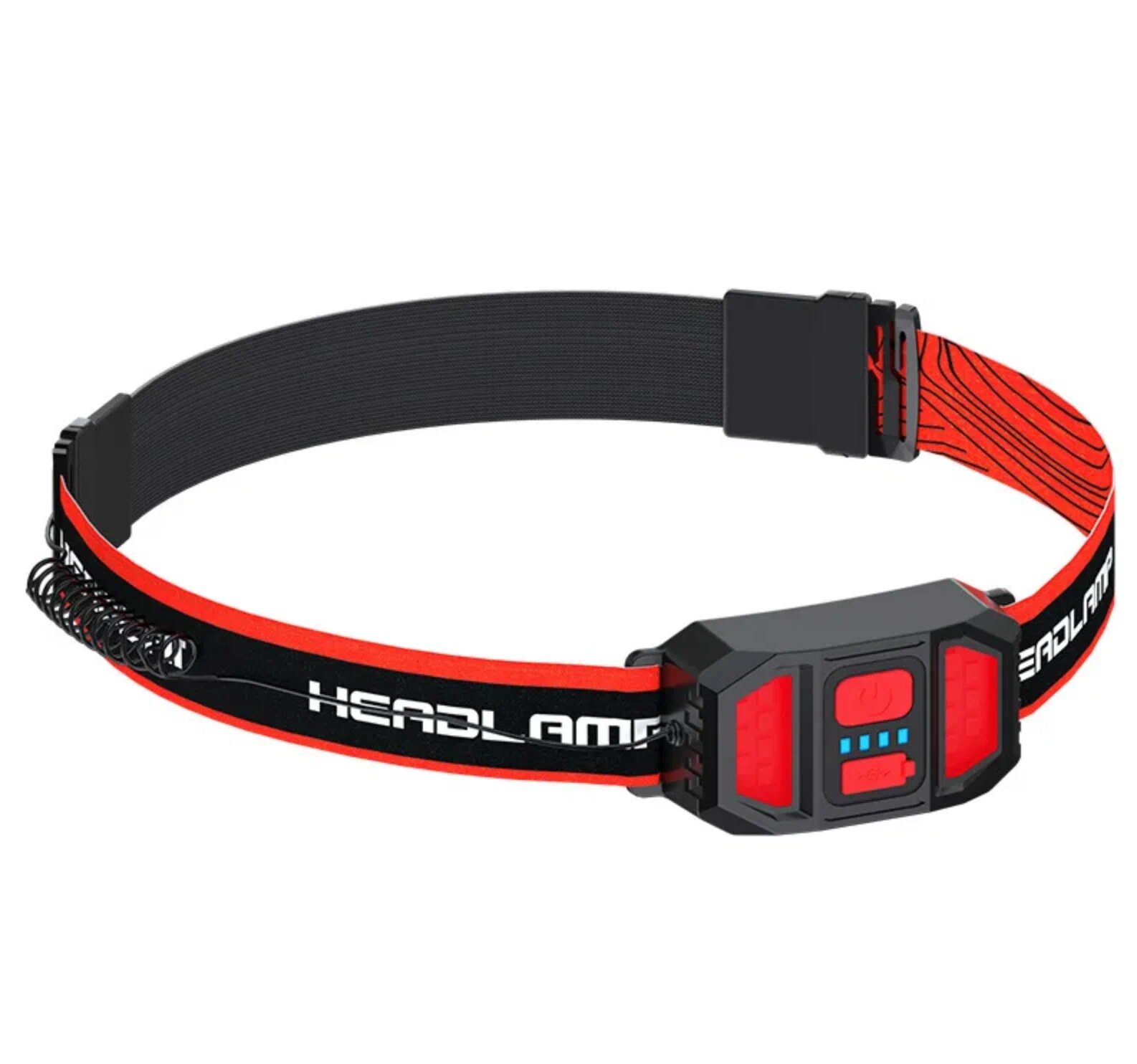 Купить Фонарик налобный аккумуляторный светодиодный FA-XL200 (гибкая COB панель + боковой светодиод, датчик движения, водонепроницаемый, зарядка USB) Digital Red