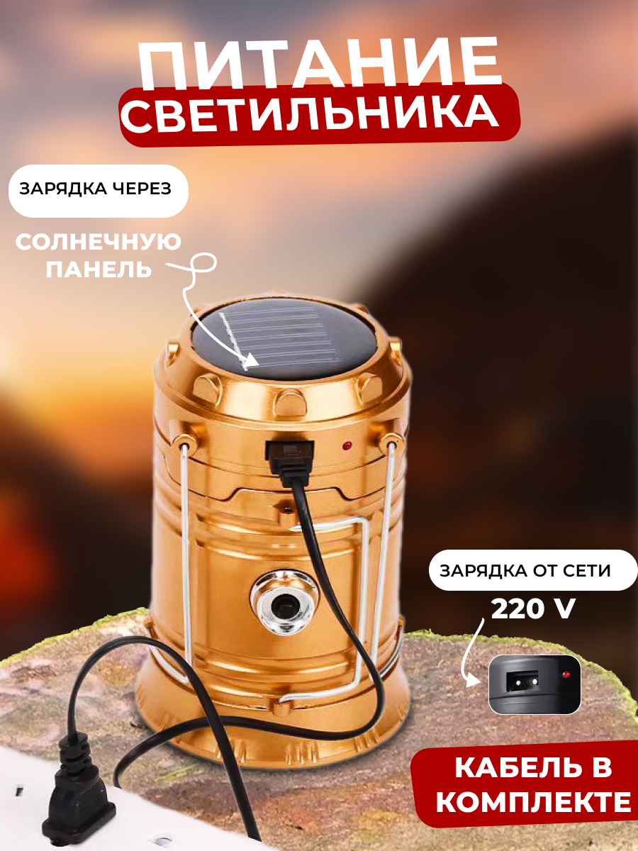 кемпинговый LED фонарь с солнечной батареей