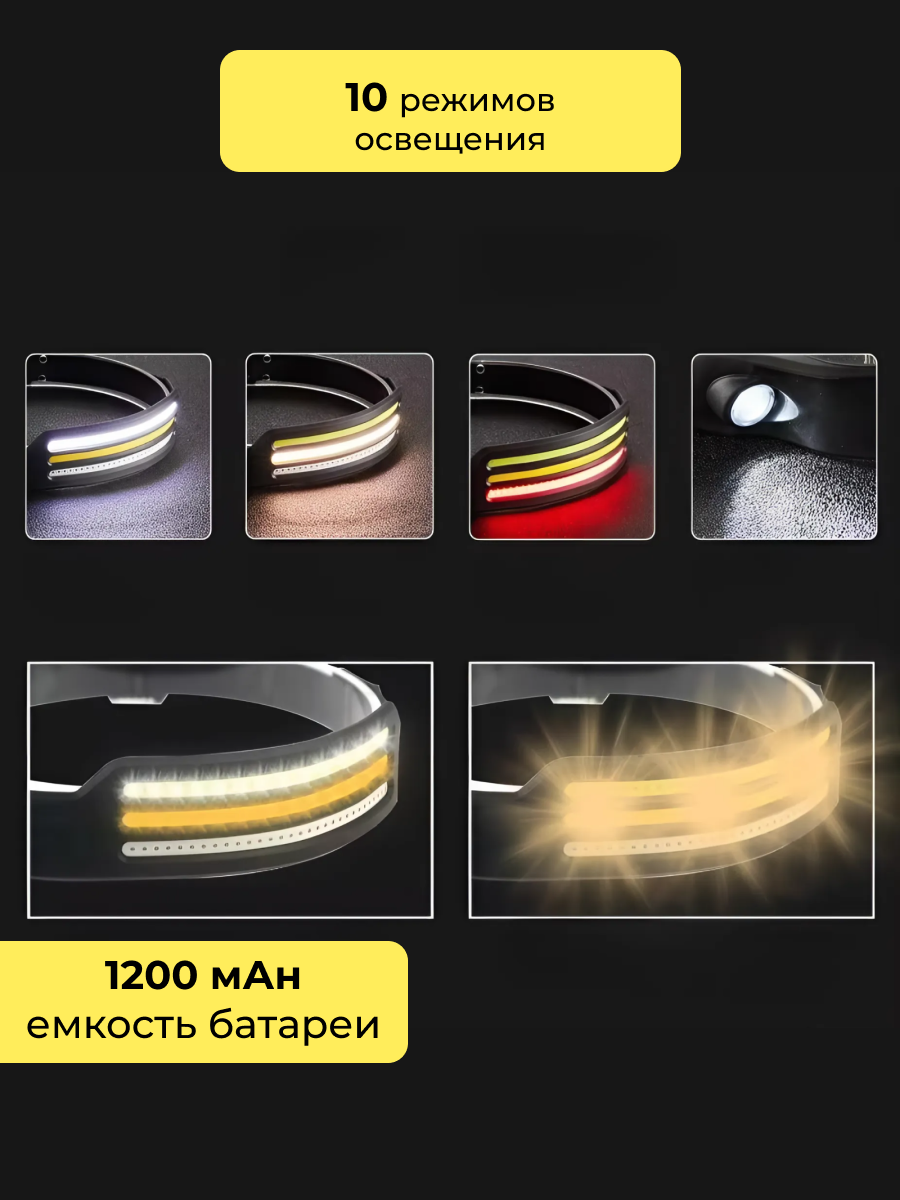 Налобный фонарик светодиодный сов с зарядкой, встроенный аккумулятор