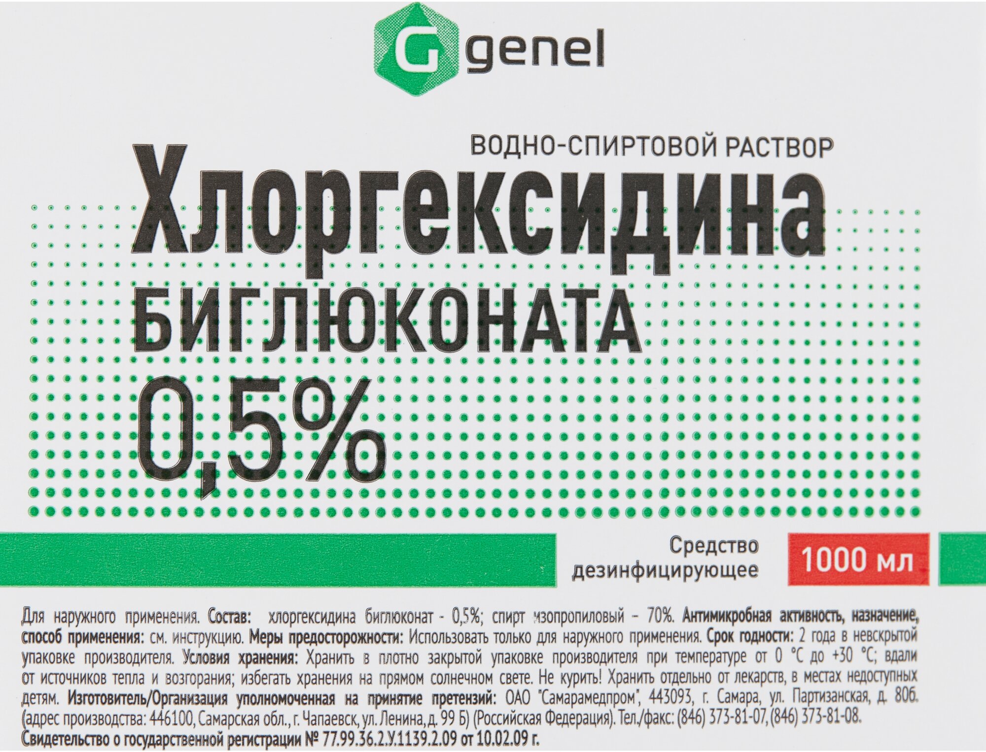 Купить Средство дезинфицирующее Хлоргексидин спиртовой 0,5%, пластиковый флакон, 1 л, Самарамедпром, 608301