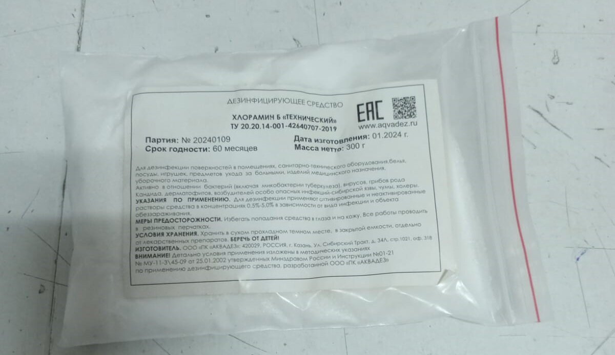 Хлорамин-б, Технический, 15 кг, порошок, 50 пакетов по 300 г, Россия, аква