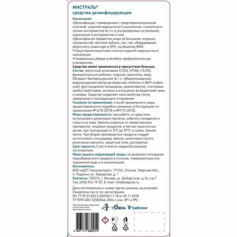 Дезинфицирующее средство Мистраль 1 литр интересное: