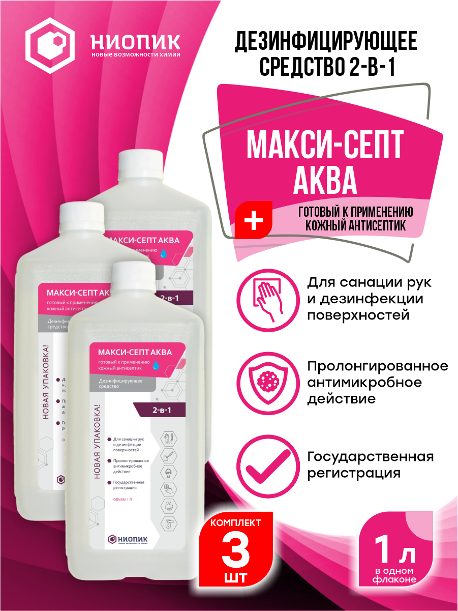Купить Антисептическое средство Макси-Септ аква 1 литр еврофлакон х 3 шт.