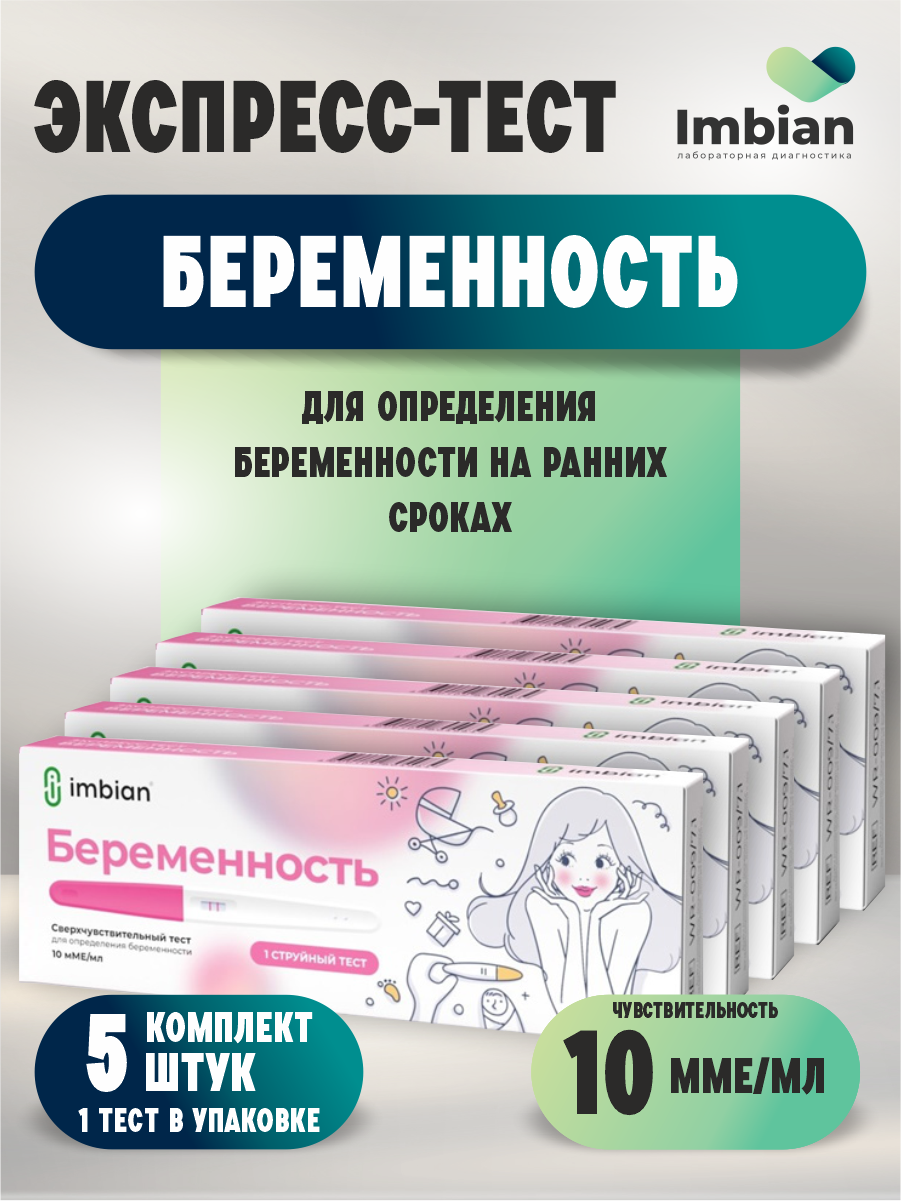 Экспресс-тест Имбиан на беременность струйный 10мМЕ/мл. х 5 шт. интересное: