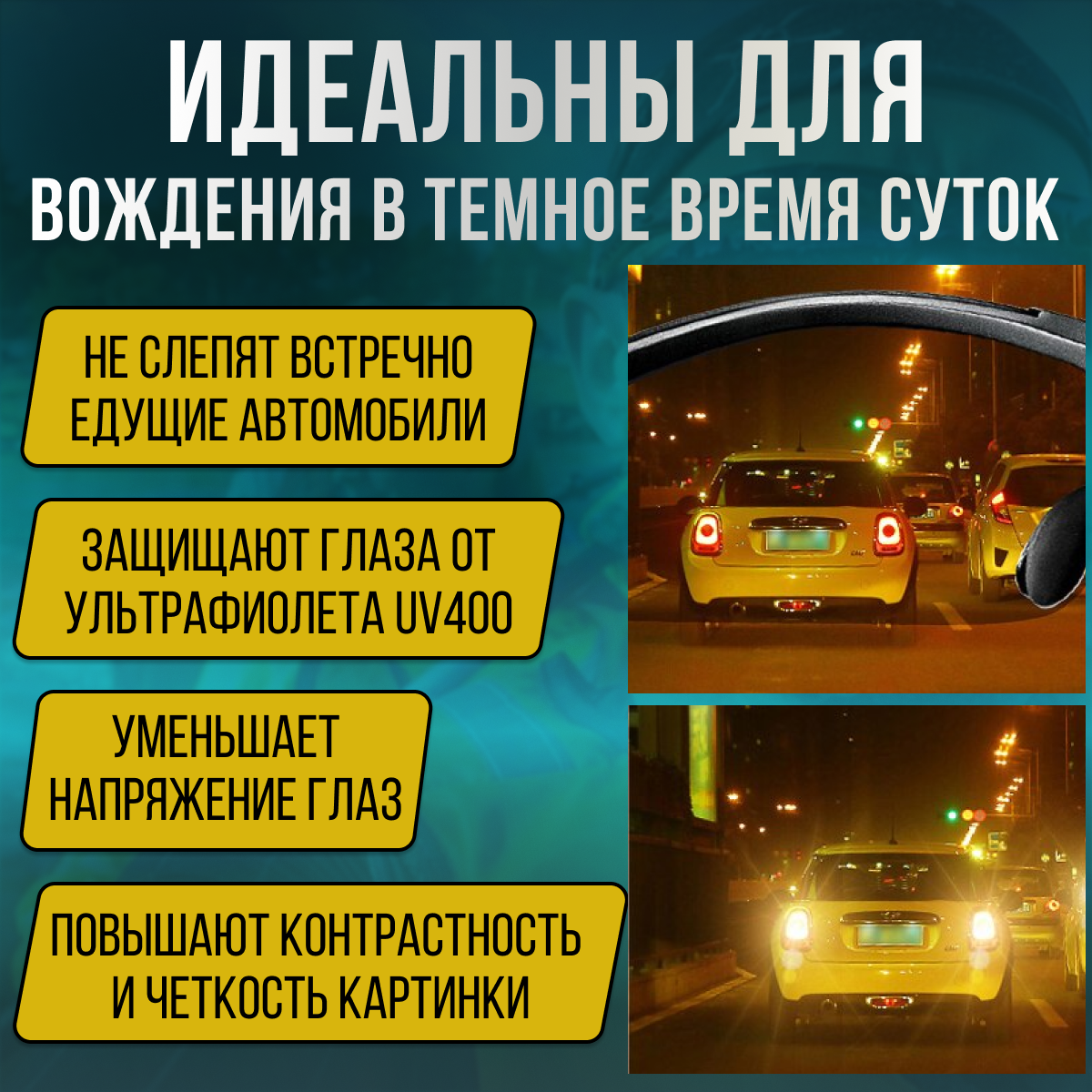 Купить Очки для водителя / очки антифары / очки для вождения в темное время суток