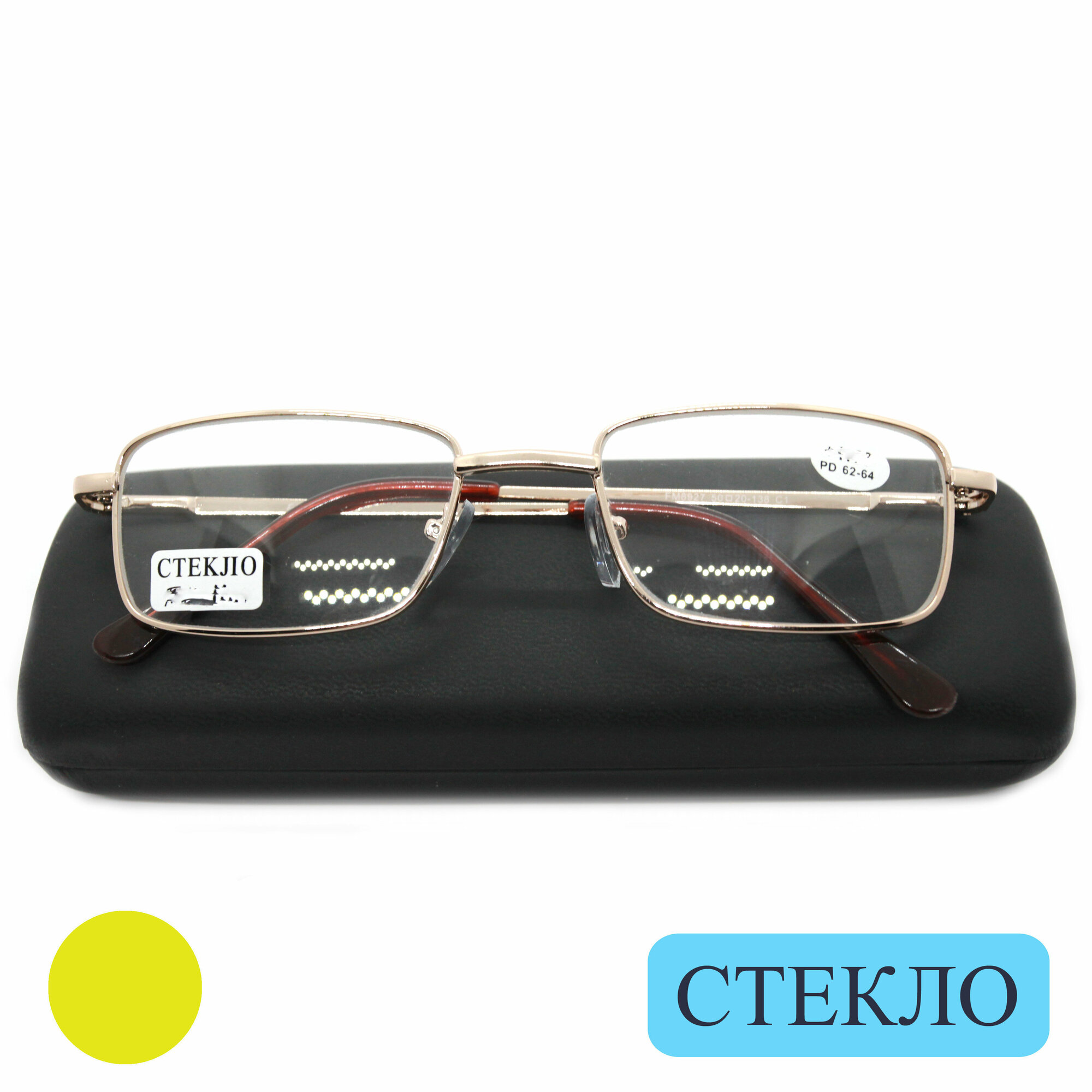Готовые очки для чтения мужские с футляром (+1.50) линза стекло, цвет золотой, РЦ62-64