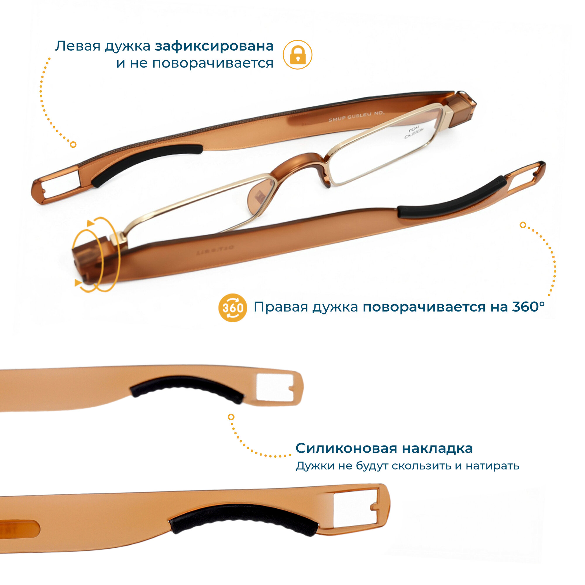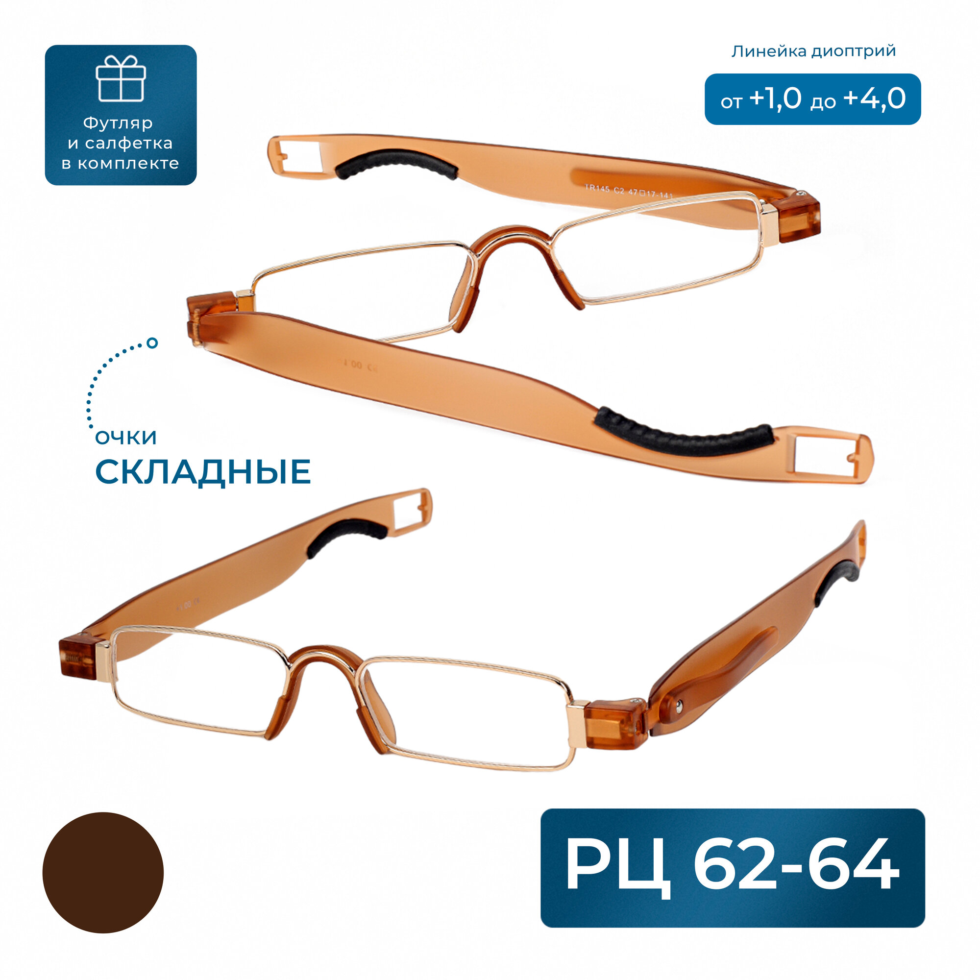 Складные компактные очки для зрения-чтения (+3.00) карбоновые, TR145, цвет коричневый, РЦ 62-64