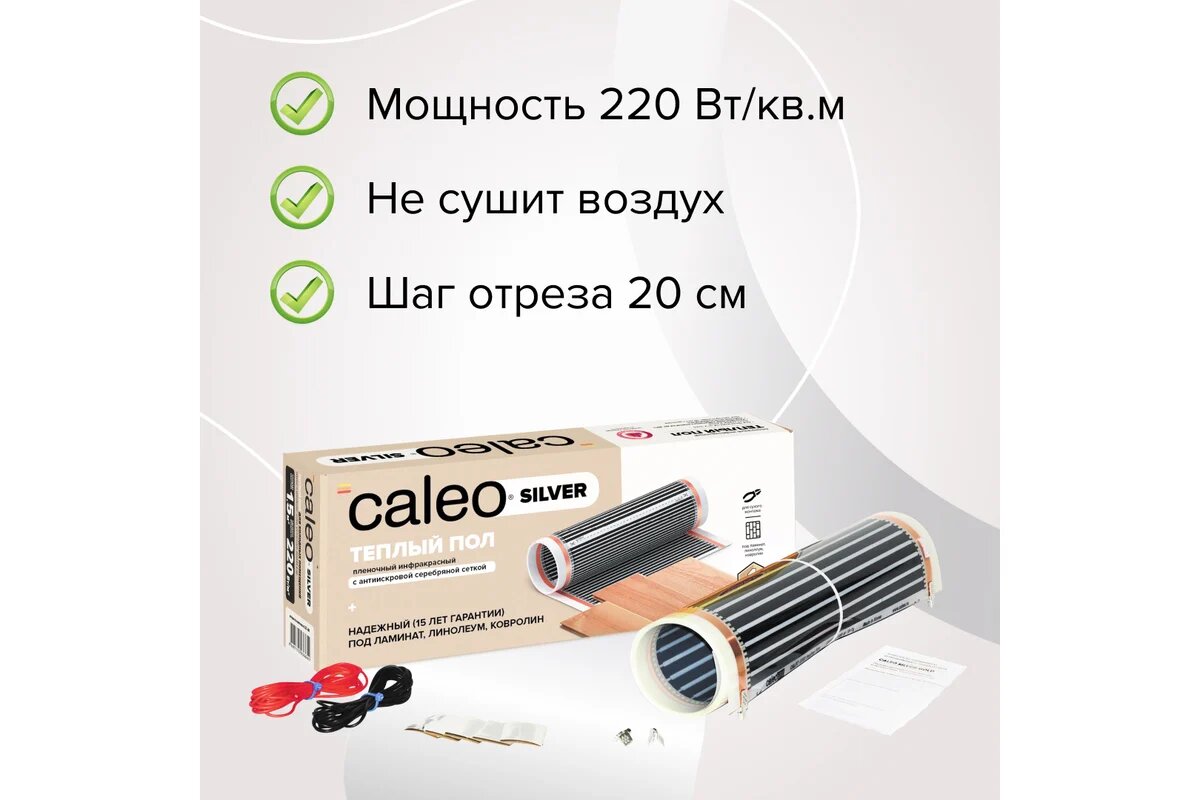 Теплый пол пленочный Caleo SILVER 220-0,5-15, 220 Вт/м2, 15 м2