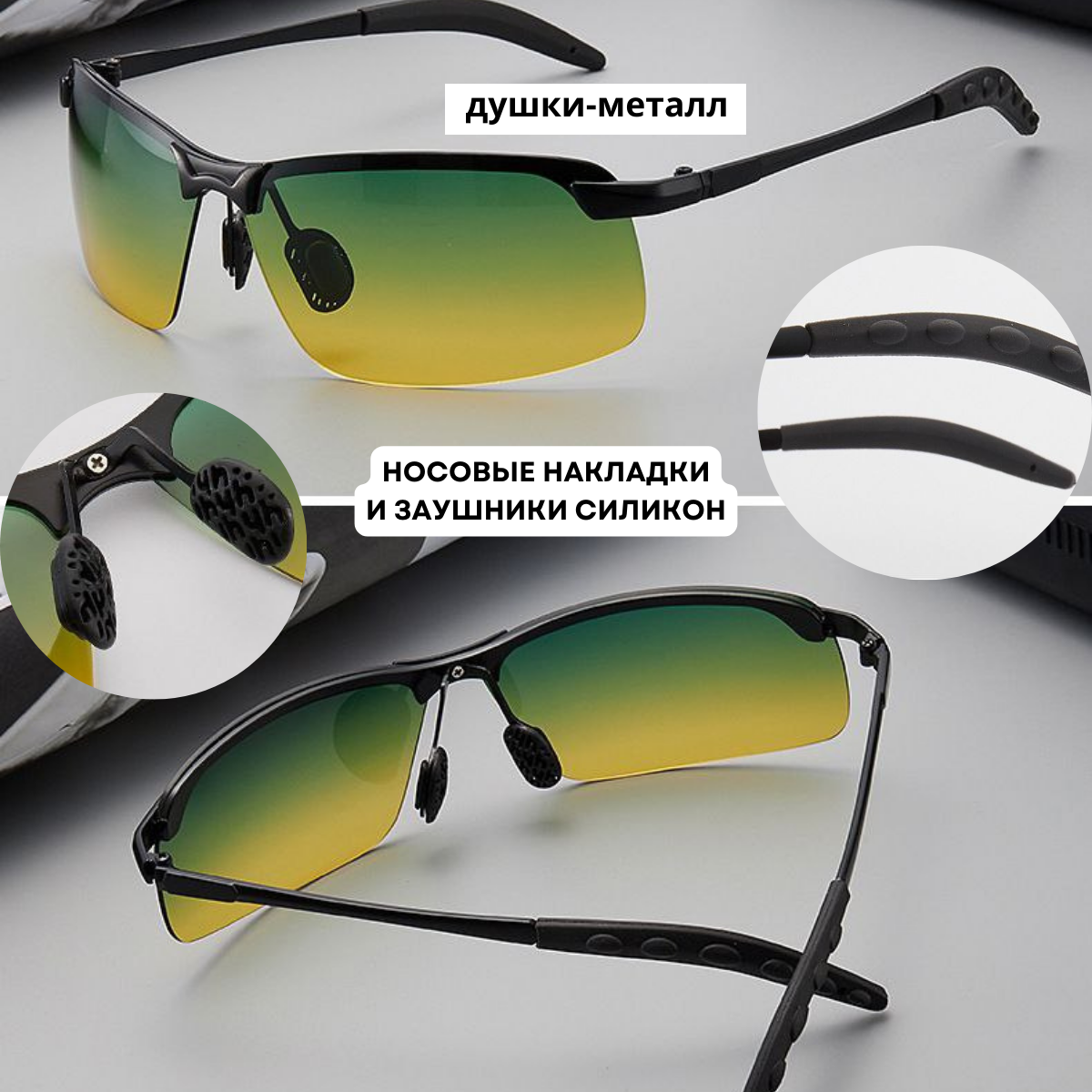 Купить Очки антибликовые для водителя, очки мужские, женские для ночного вождения. Очки против бликов в машину с желто зелеными линзами