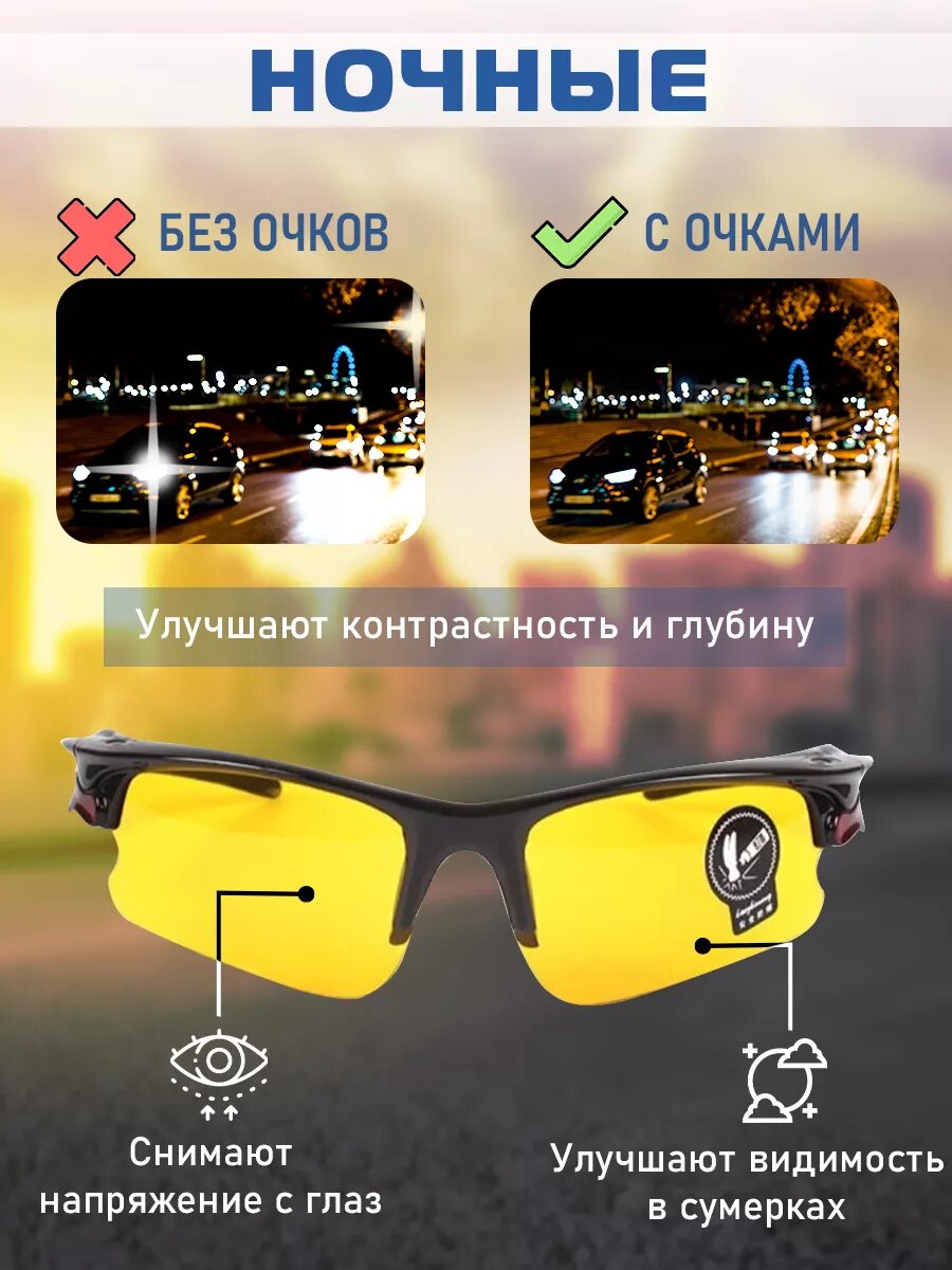 Очки для вождения поляризационные. Набор День - Ночь. Антибликовые