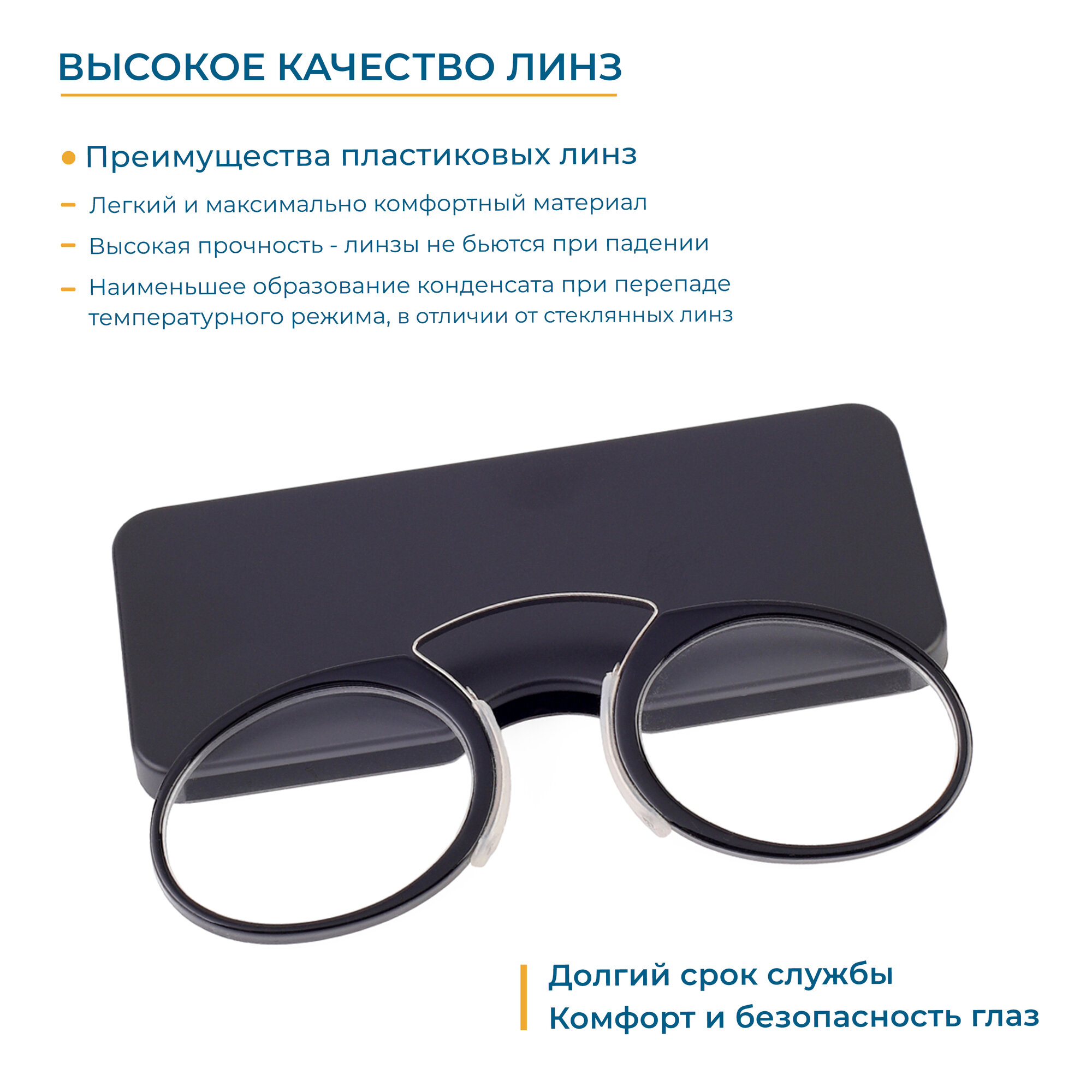 Купить Ультратонкие готовые очки для зрения и чтения пенсне (+2.00) цвет черный, РЦ 62-64