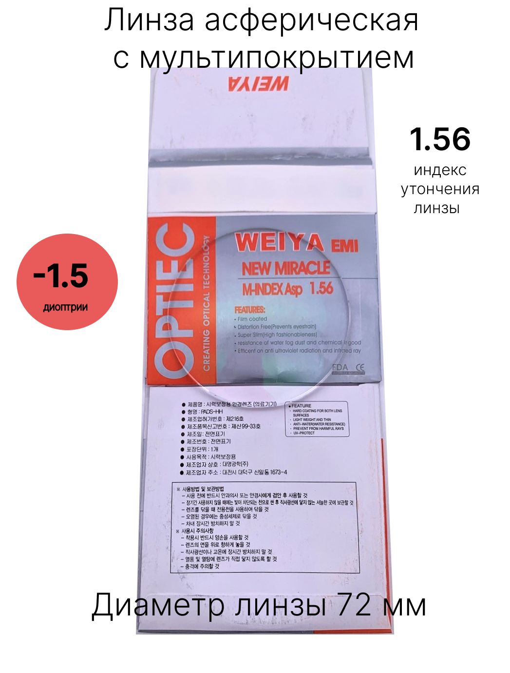 Купить Линзы для очков -1,5 с индексом утончения 1,56