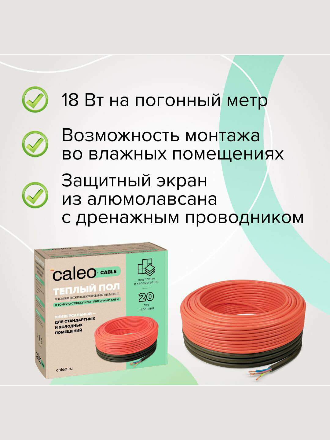 Греющий кабель Caleo Cable 18W-20, 360 Вт, 1,8-2,8 м2