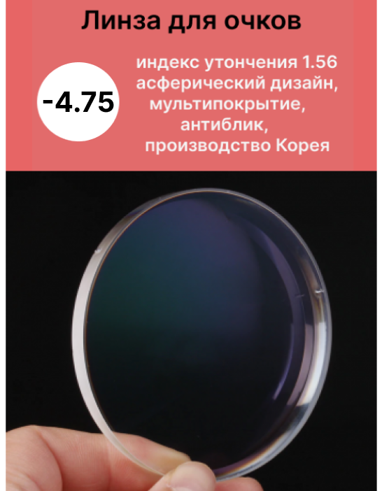 Купить Линзы для очков -4,75 с индексом утончения 1,56