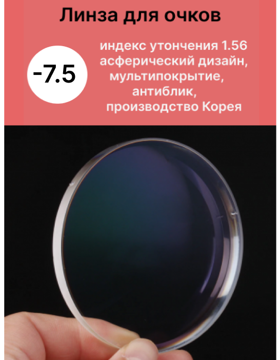 Купить Линзы для очков -7,5 с индексом утончения 1,56