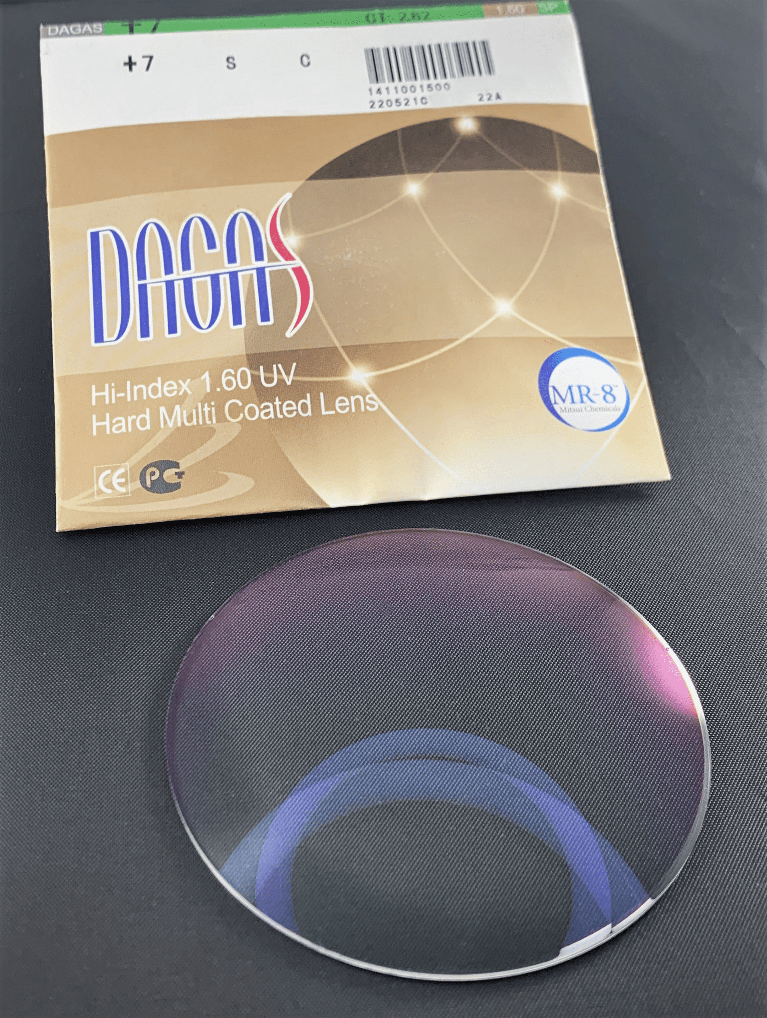 Линза для очков утонченная DAGAS 1.61 HMC/EMI UV400-7.75